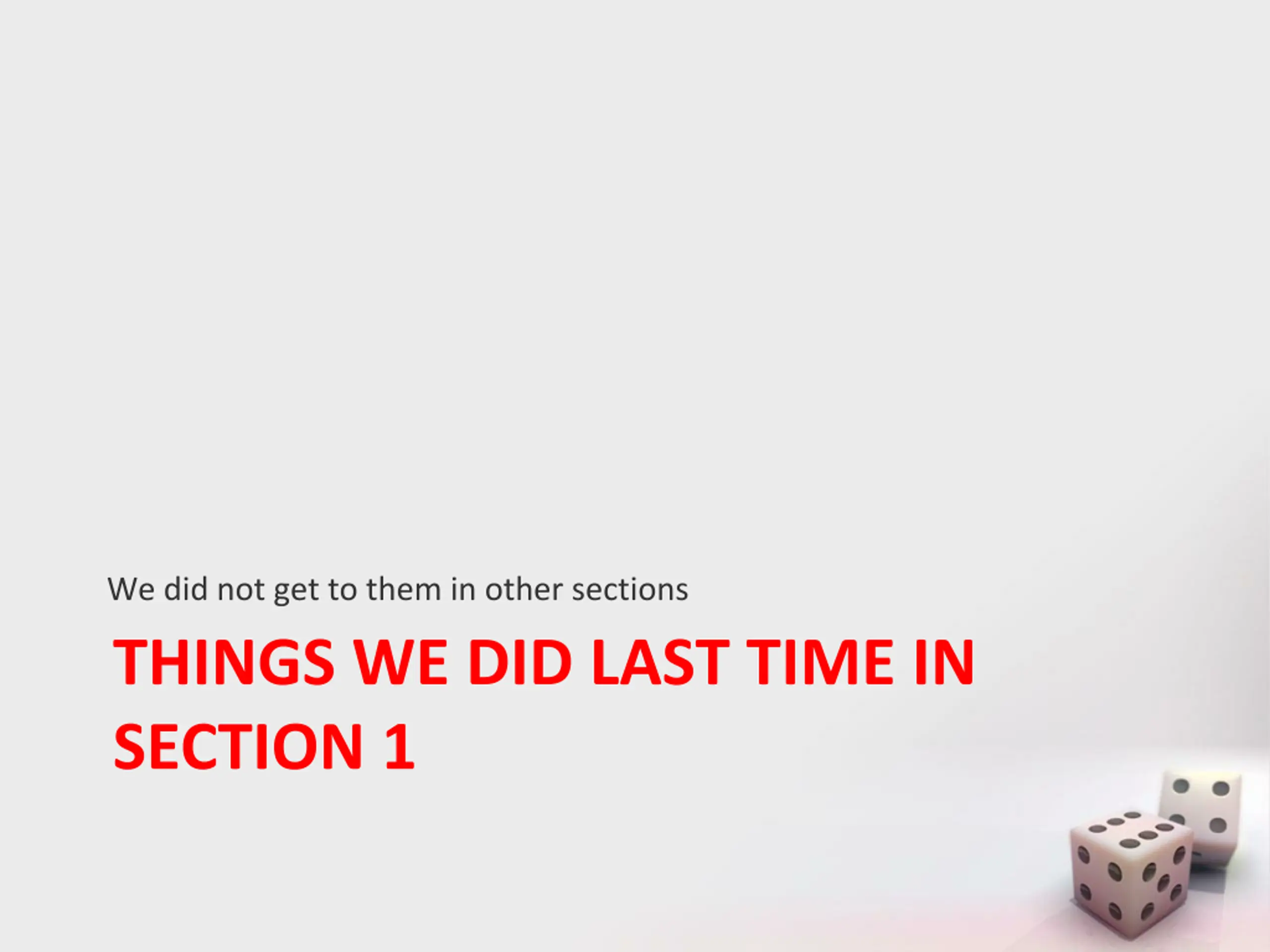 We did not get to them in other sections THINGS WE DID LAST TIME IN SECTION 1