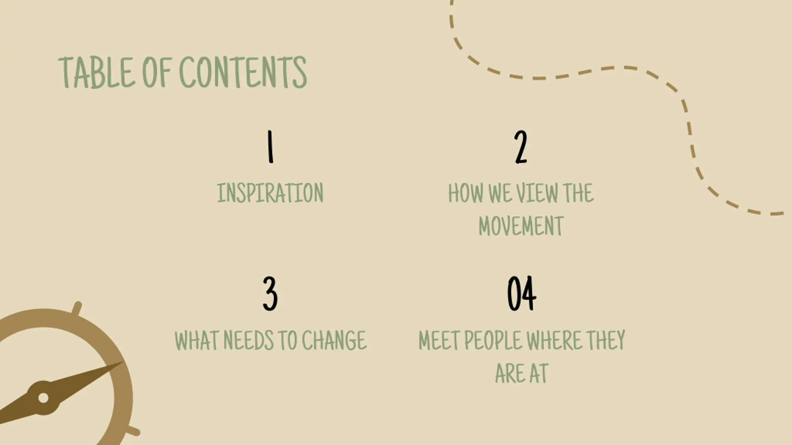 TABLE OF CONTENTS 2 1 INSPIRATION HOW WE VIEW THE MOVEMENT 3 04 WHAT NEEDS TO CHANGE MEET PEOPLE WHERE THEY ARE AT