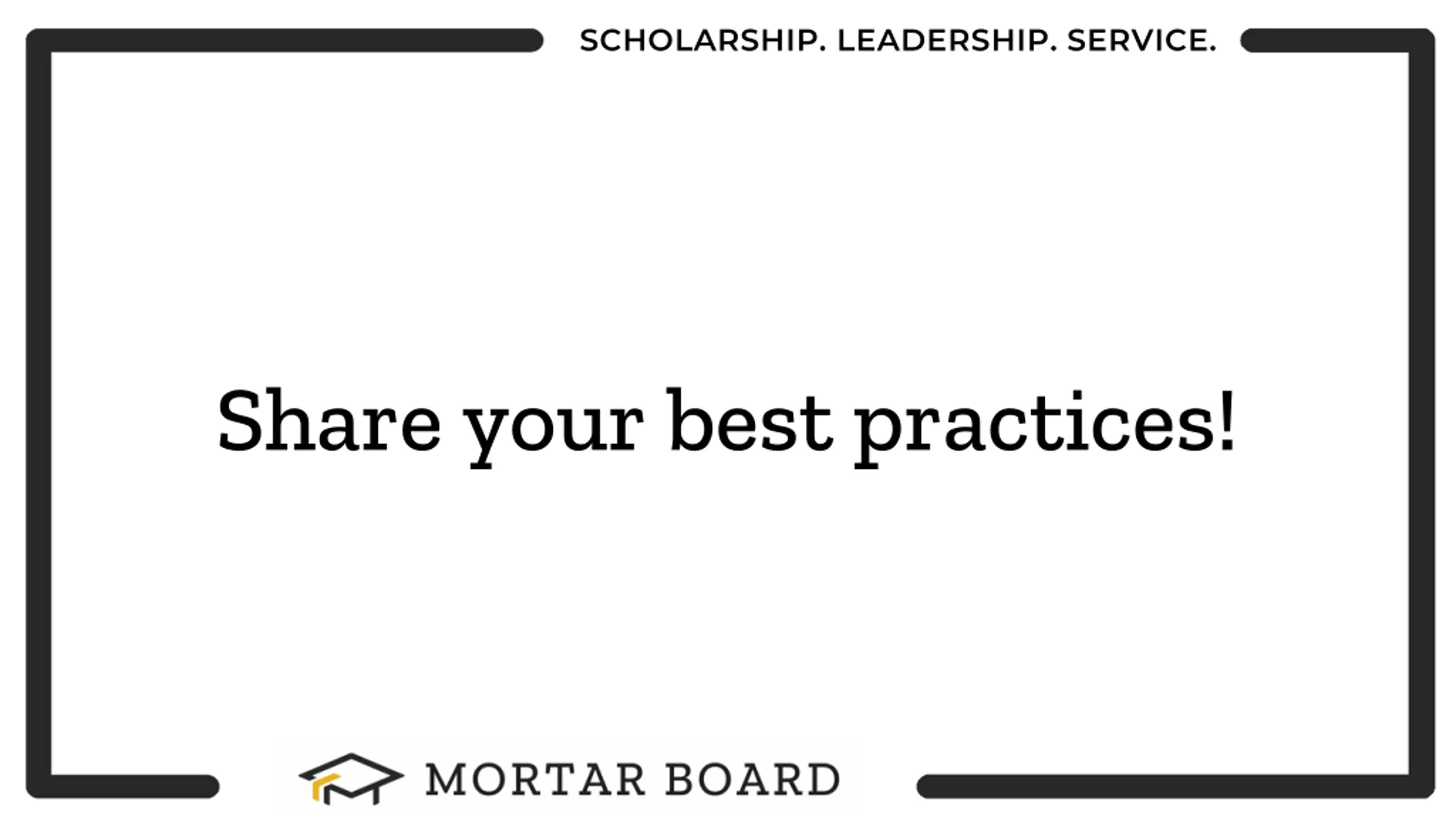 SCHOLARSHIP. LEADERSHIP. SERVICE. Share your best practices!