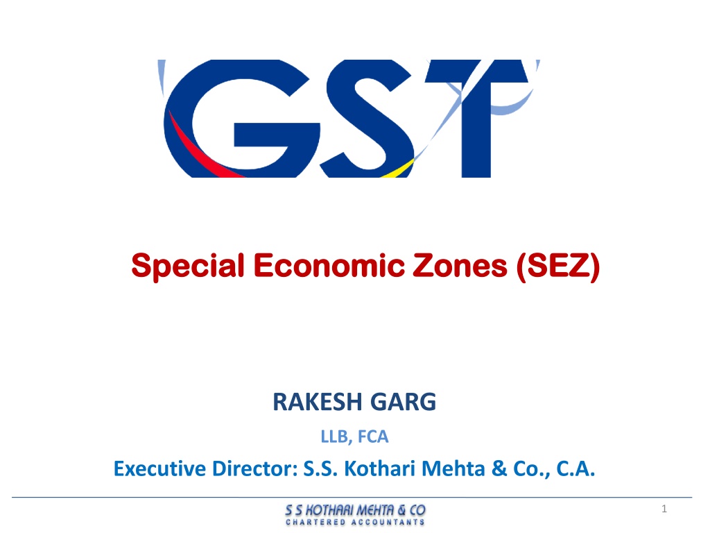 Special Economic Zones (SEZ) Special Economic Zones (SEZ) RAKESH GARG LLB, FCA Executive Director: S.S. Kothari Mehta & Co., C.A. 1
