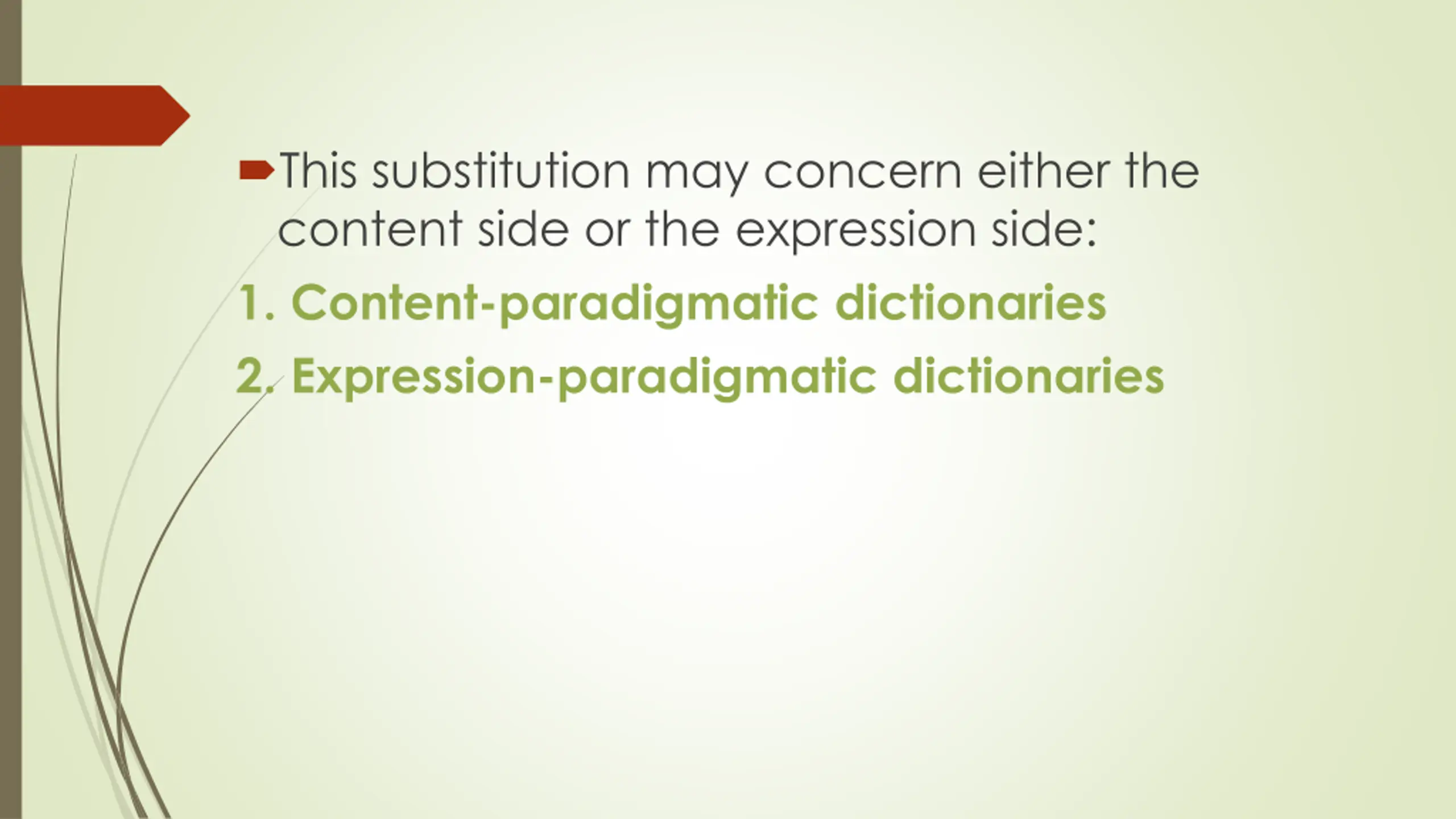 This substitution may concern either the content side or the expression side: 1. Content-paradigmatic dictionaries 2. Expression-paradigmatic dictionaries