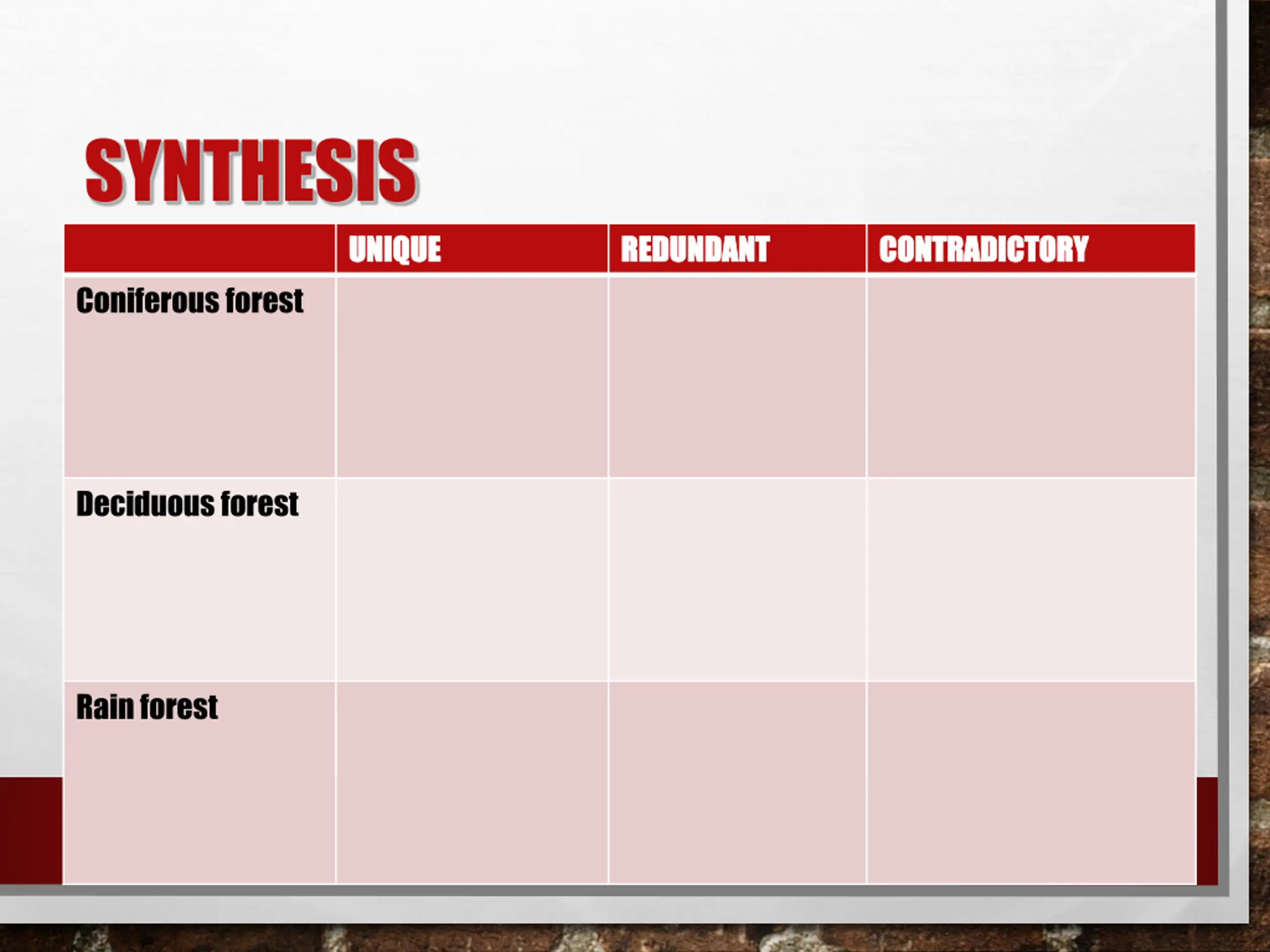 SYNTHESIS UNIQUE UNIQUE REDUNDANT REDUNDANT CONTRADICTORY CONTRADICTORY Coniferousforest Deciduousforest Rain forest