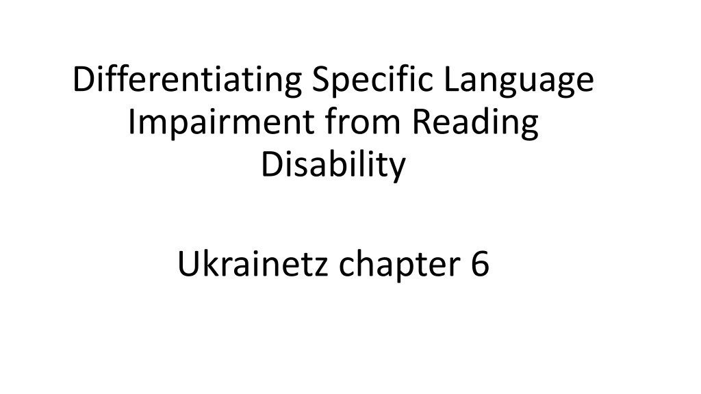Explore the differentiation between Specific Language Impairment (SLI) and Reading Disability in children, with a focus on characteristics, developmental milestones, and additional references for further study. Learn about the importance of recognizing Developmental Language Disorder (DLD) and its implications for speech-language pathologists.