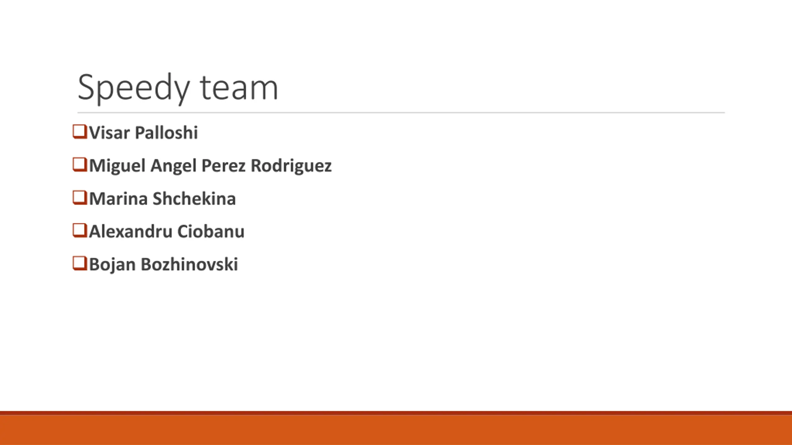 Speedy team Visar Palloshi Miguel Angel Perez Rodriguez Marina Shchekina Alexandru Ciobanu Bojan Bozhinovski