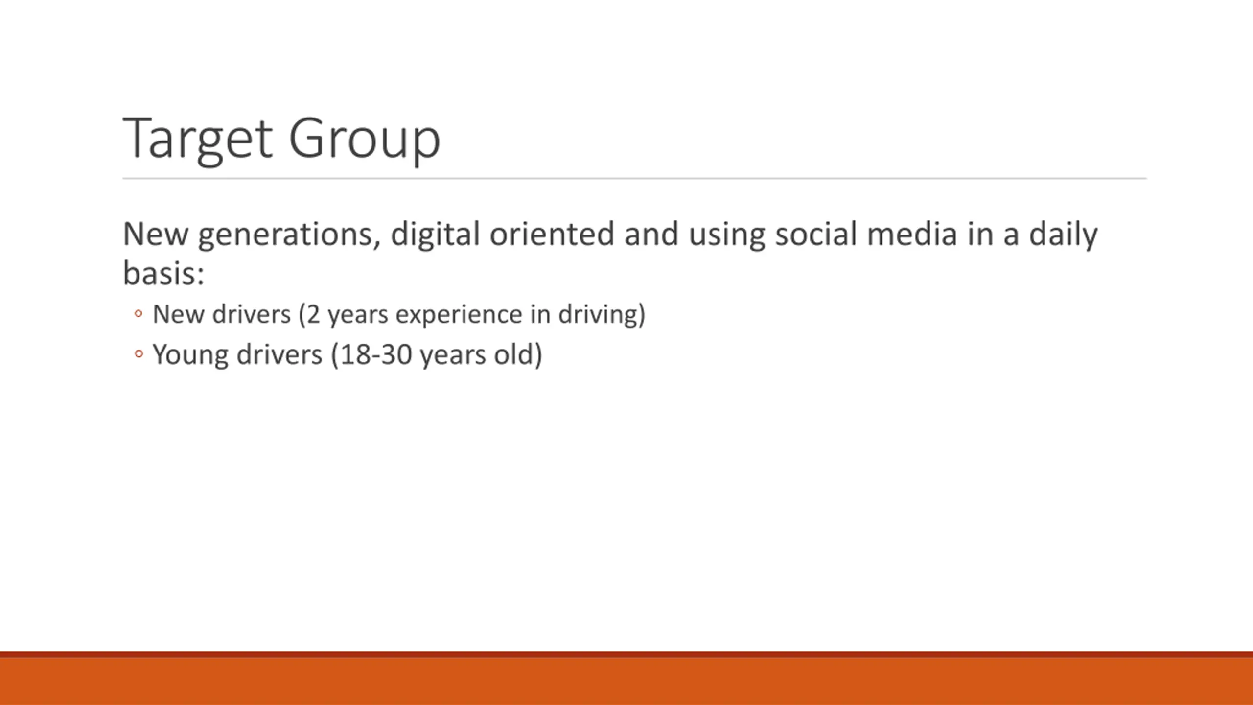 Target Group New generations, digital oriented and using social media in a daily basis: New drivers (2 years experience in driving) Young drivers (18-30 years old)