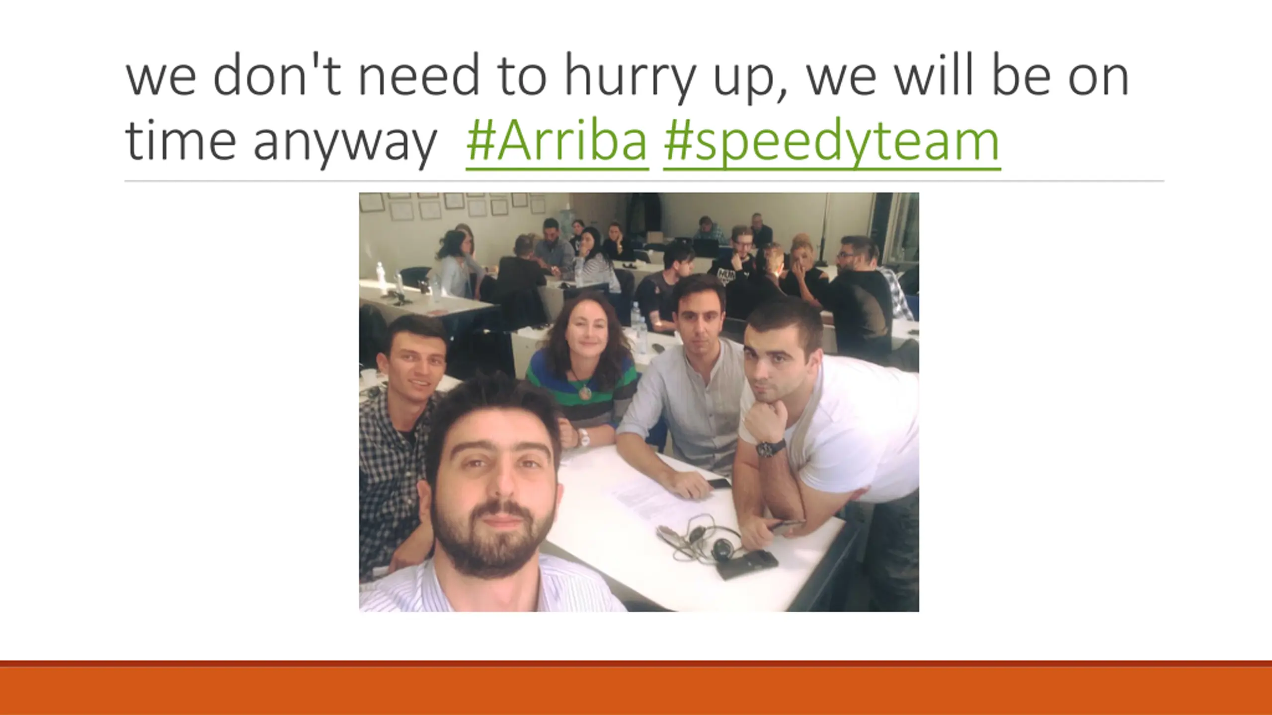 we don't need to hurry up, we will be on time anyway #Arriba #speedyteam