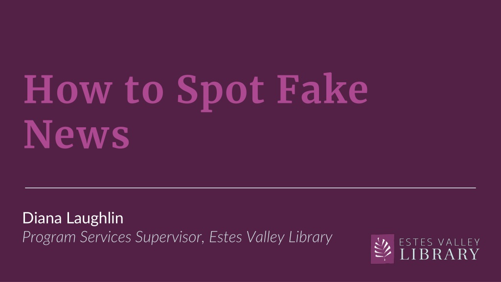 How to Spot Fake News Diana Laughlin Program Services Supervisor, Estes Valley Library