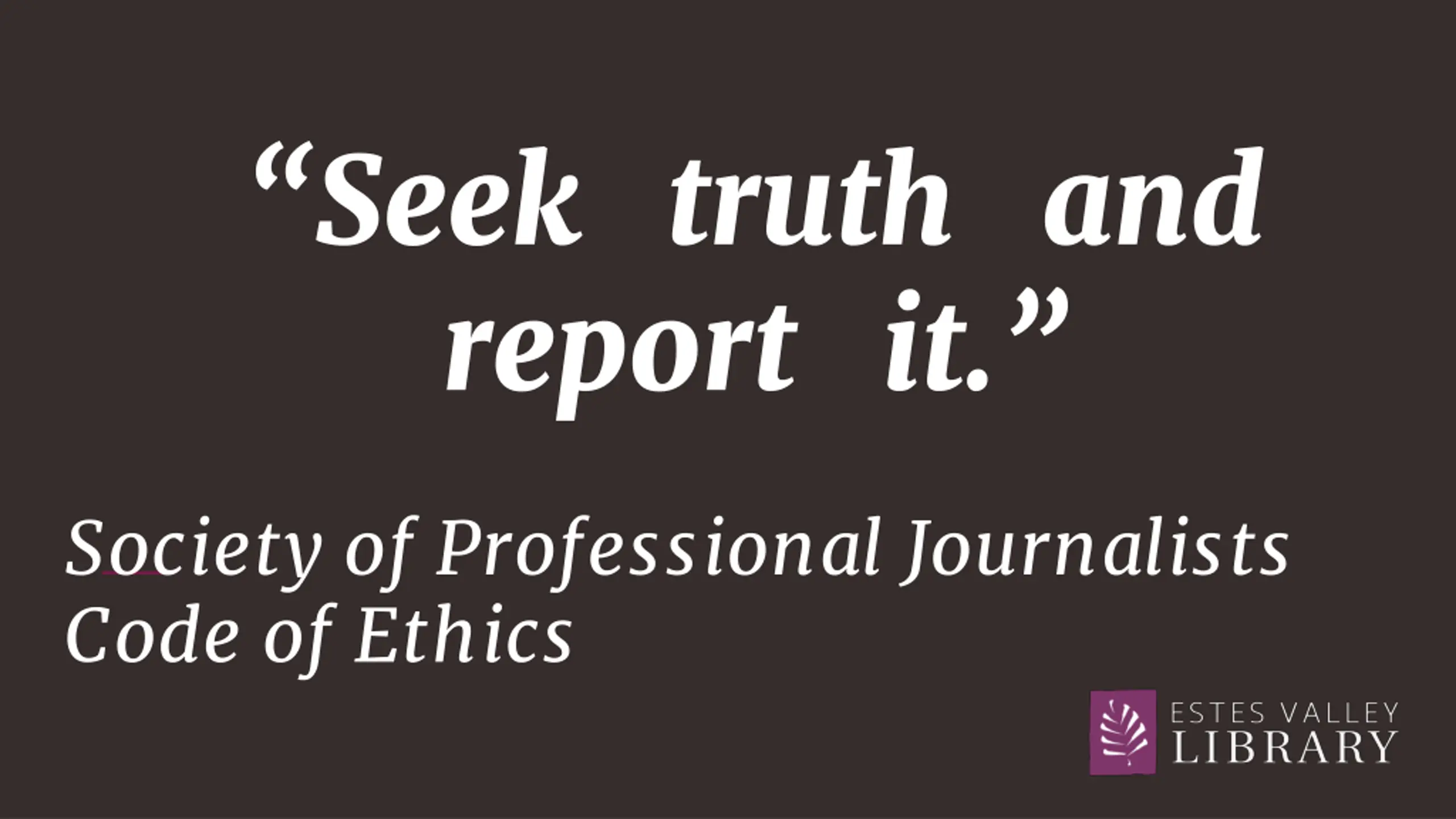 Seek truth and report it. Society of Professional Journalists Code of Ethics