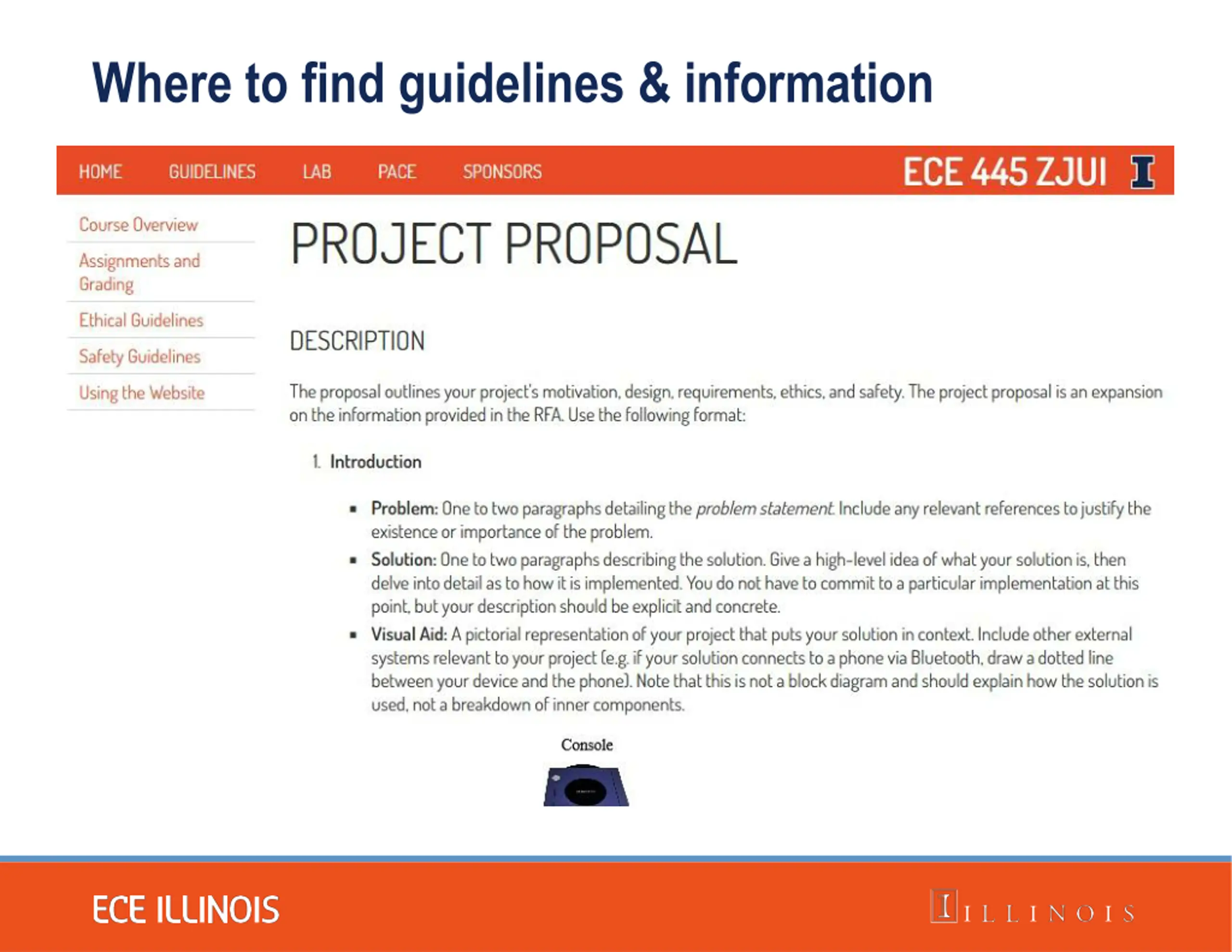 ECE 445/ME470 ZJUI: Proposal Logistics Spring 2023 Prof. Arne Fliflet (afliflet@illinois.edu) Prof. Mark Butala (MarkButala@intl.zju.edu.cn) Prof. Timothy Lee (timothylee@intl.zju.edu.cn) Prof. Chenhui Shao (chshao@Illinois.edu) Prof. Rakesh Kumar (rakeshk@Illinois.edu)