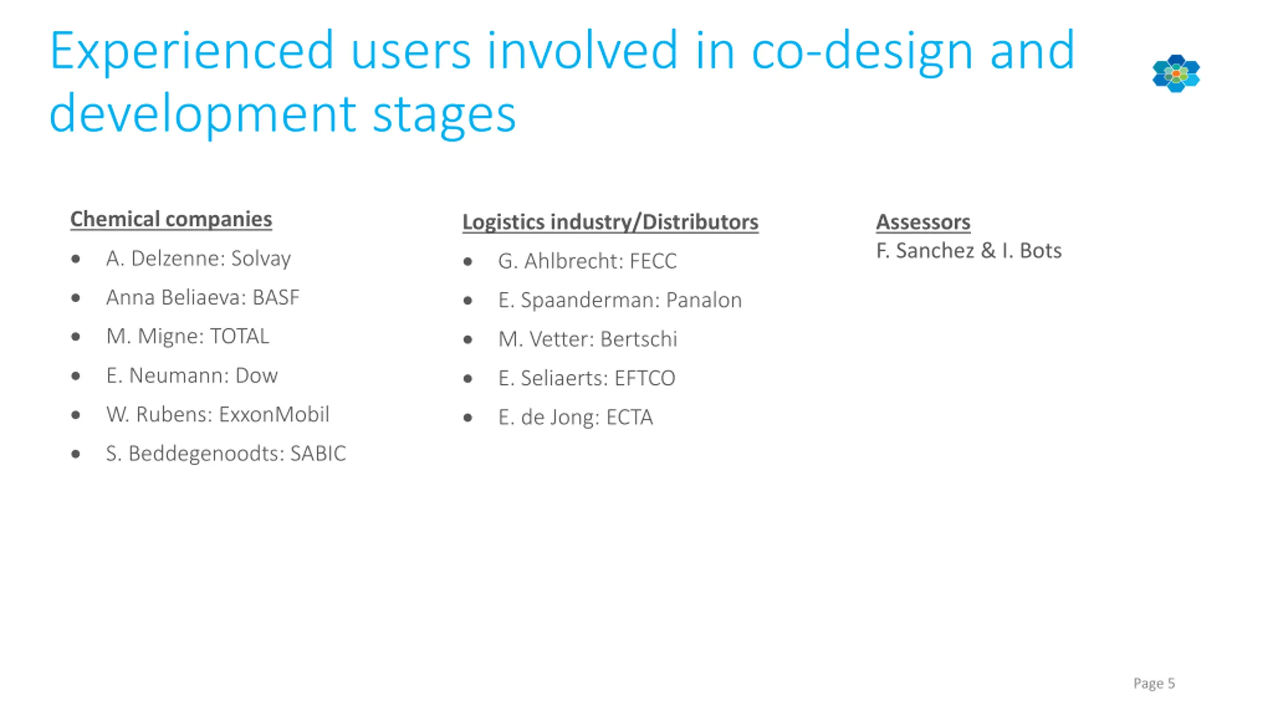 Experienced users involved in co-design and development stages Chemical companies A. Delzenne: Solvay Anna Beliaeva: BASF M. Migne: TOTAL E. Neumann: Dow W. Rubens: ExxonMobil S. Beddegenoodts: SABIC Logistics industry/Distributors G. Ahlbrecht: FECC E. Spaanderman: Panalon M. Vetter: Bertschi E. Seliaerts: EFTCO E. de Jong: ECTA Assessors F. Sanchez & I. Bots Page 5