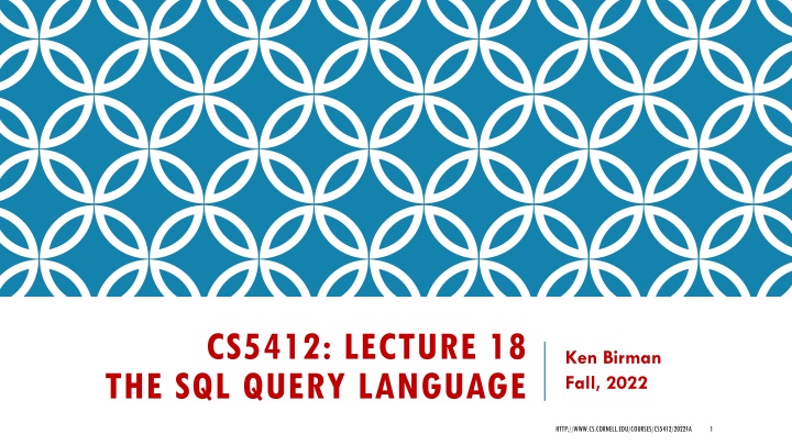 CS5412: LECTURE 18 THE SQL QUERY LANGUAGE Ken Birman Fall, 2022 HTTP://WWW.CS.CORNELL.EDU/COURSES/CS5412/2022FA 1