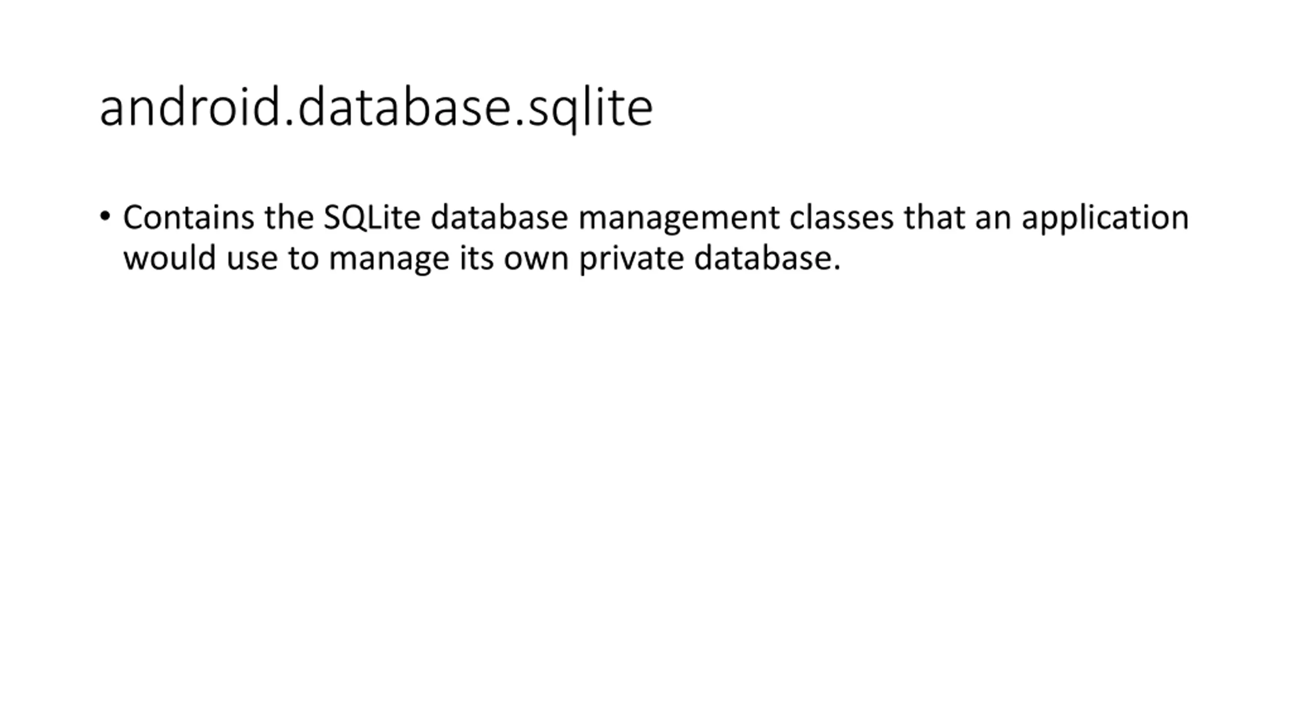 android.database.sqlite Contains the SQLite database management classes that an application would use to manage its own private database.