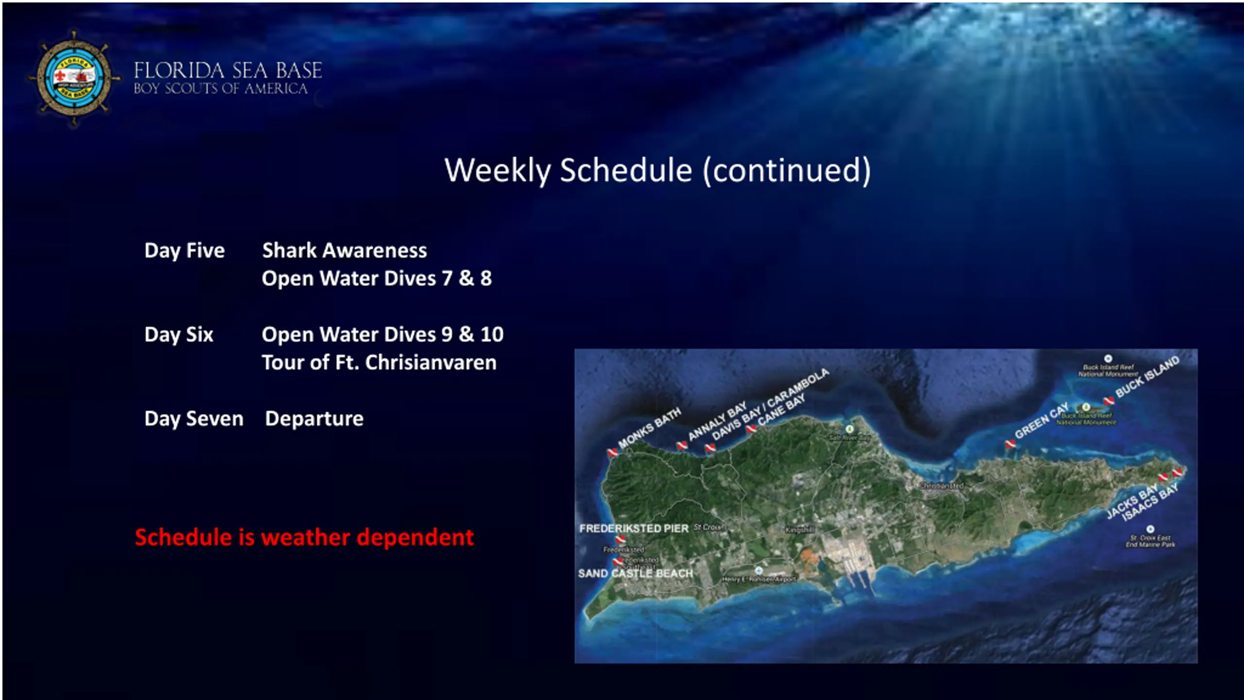 St. Croix SCUBA Adventure Program Schedule