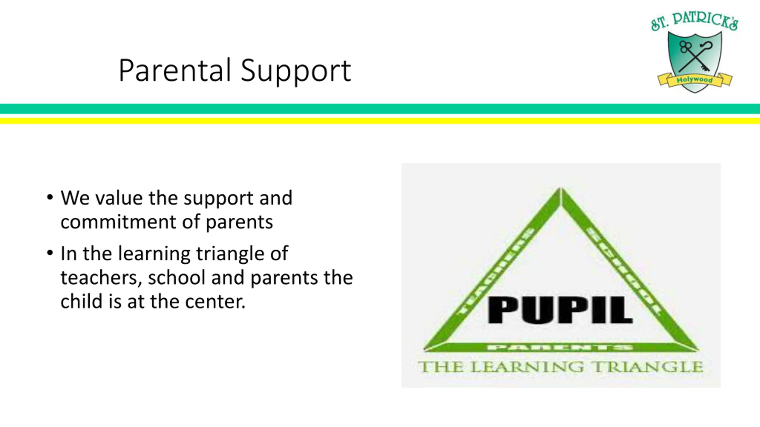 Parental Support We value the support and commitment of parents In the learning triangle of teachers, school and parents the child is at the center.