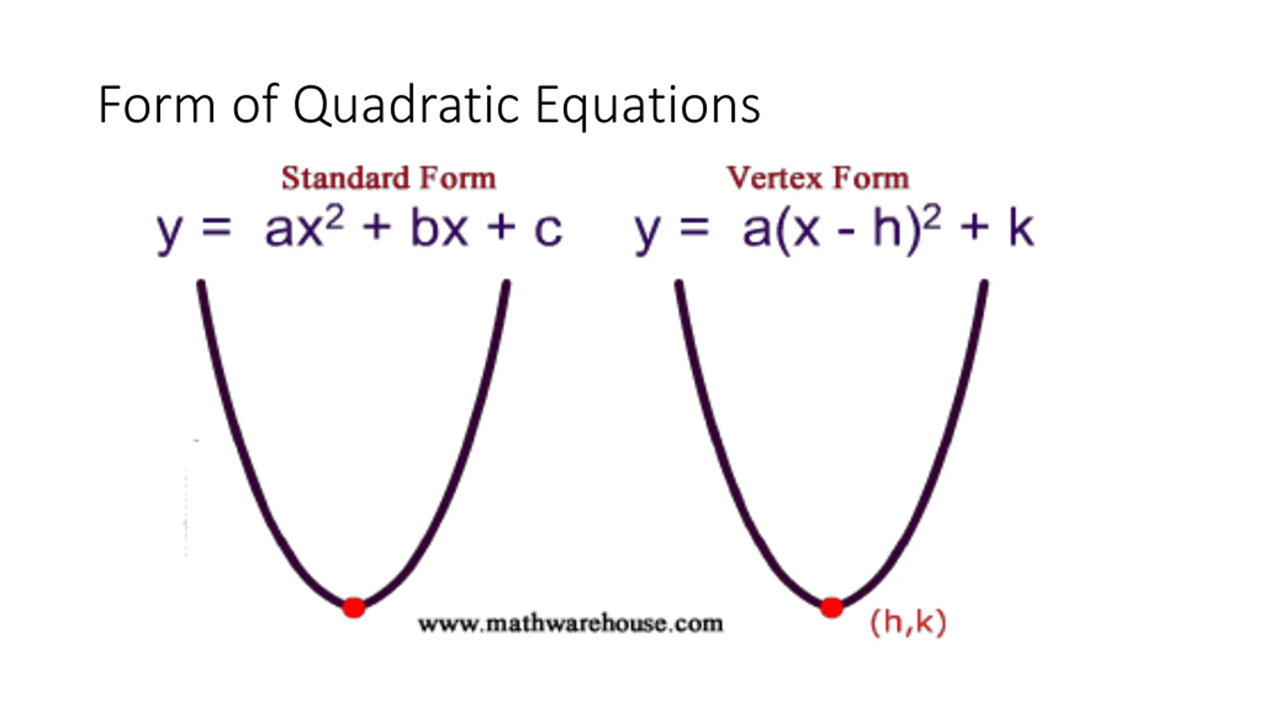Vertex Form of a Quadratic h is the opposite of the x value in the vertex k is the y value in the vertex