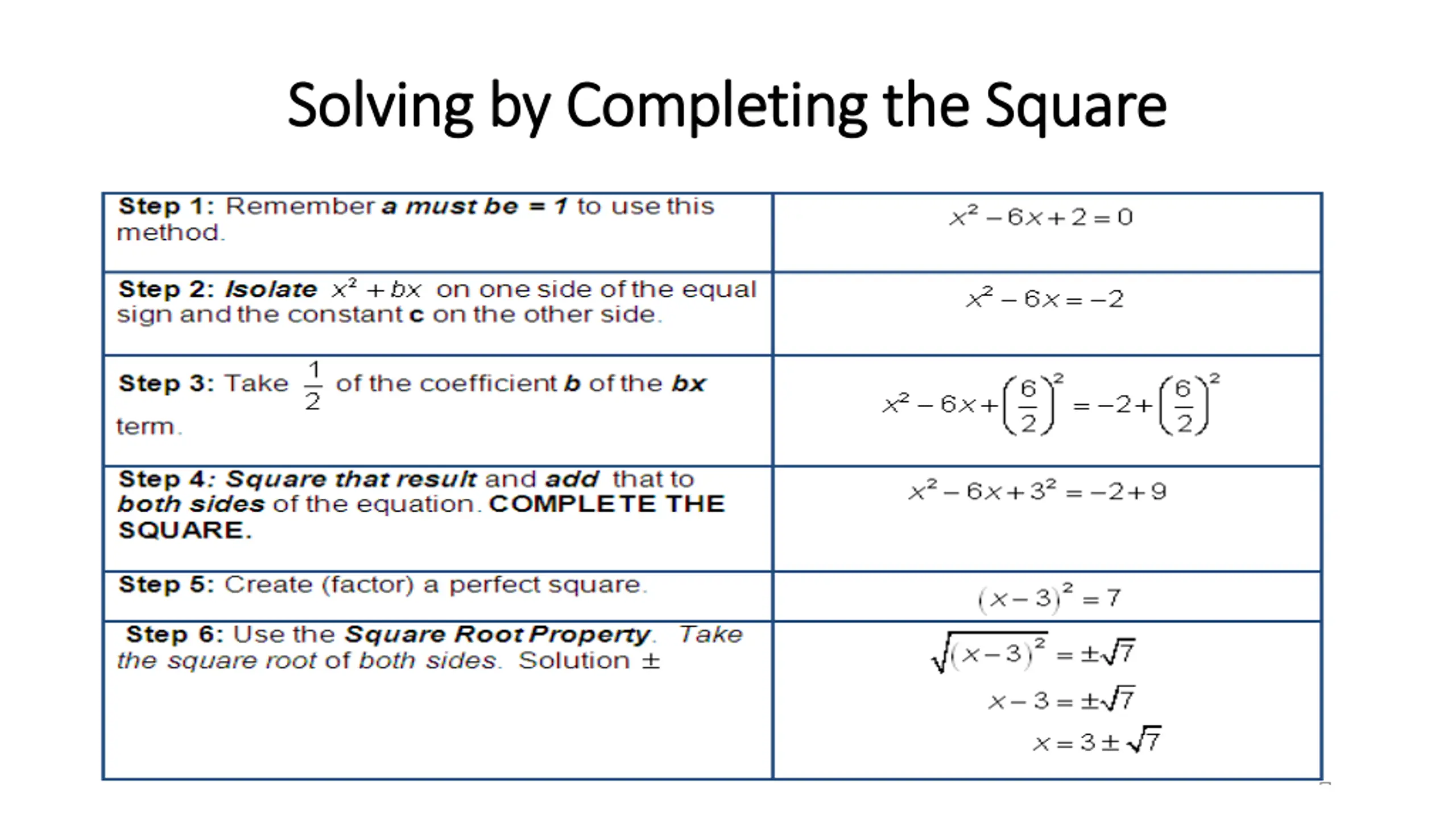 Solving by Taking Square Roots Solving by Taking Square Roots If your Quadratic equation has no x (only x2 ), you can solve by taking the square root. Ex. x2 = 9 x2 +3 = 19 4x2 - 24 = 12