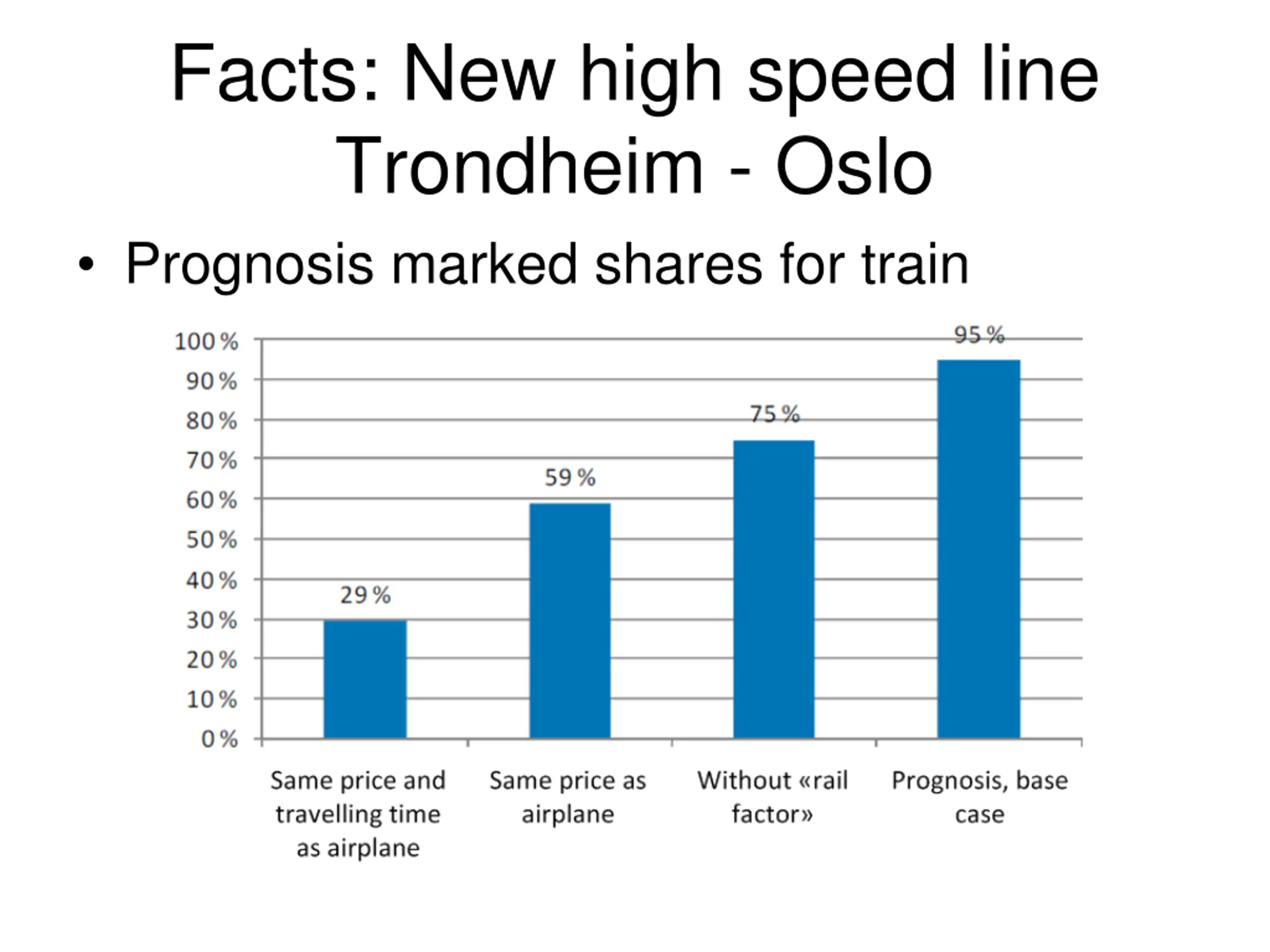 Facts: New high speed line Trondheim - Oslo Prognosis marked shares for train