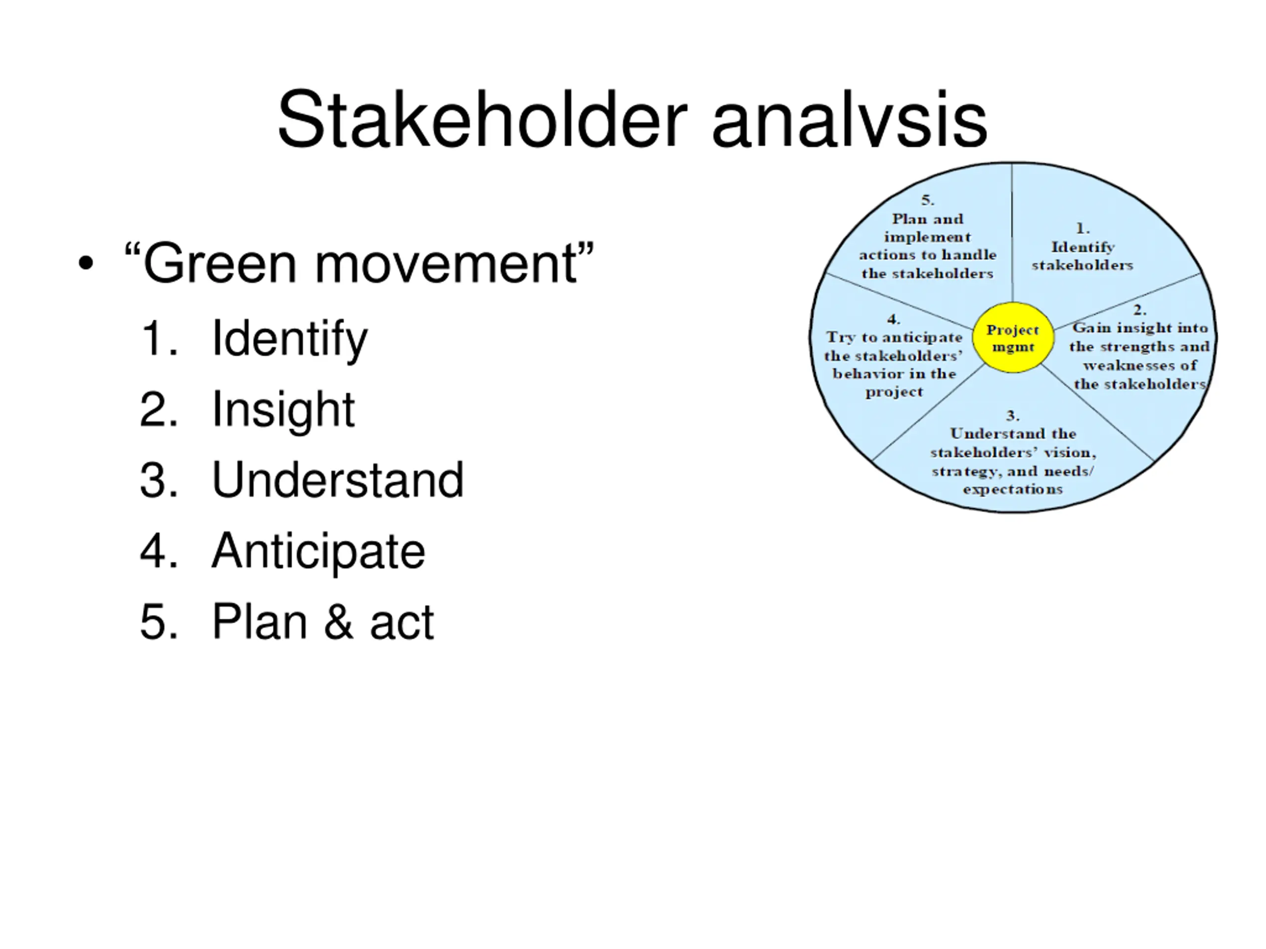 Stakeholder analysis Green movement 1. Identify 2. Insight 3. Understand 4. Anticipate 5. Plan & act