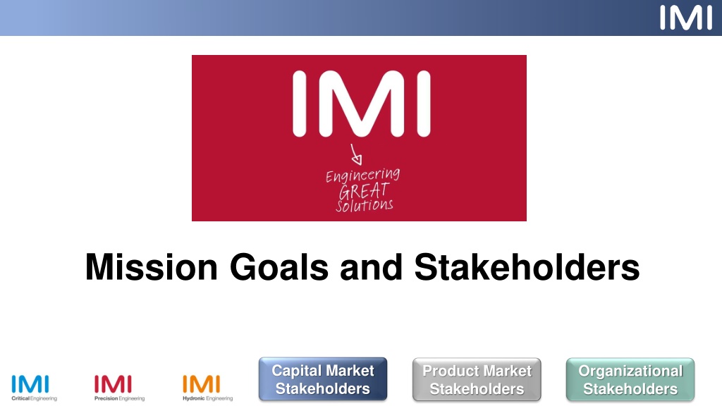 Mission Goals and Stakeholders Capital Market Stakeholders Product Market Stakeholders Organizational Stakeholders