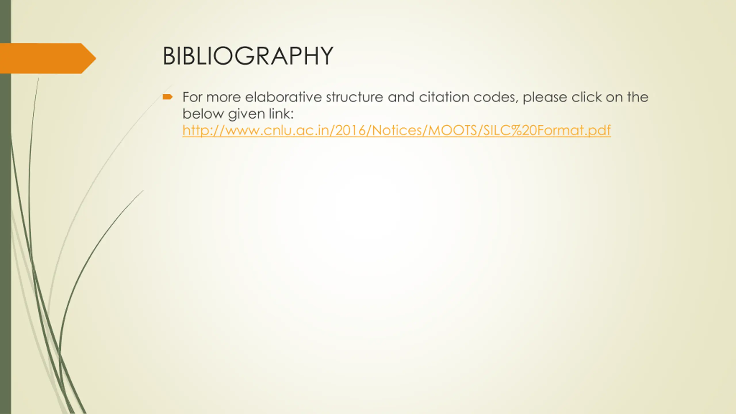BIBLIOGRAPHY For more elaborative structure and citation codes, please click on the below given link: http://www.cnlu.ac.in/2016/Notices/MOOTS/SILC%20Format.pdf