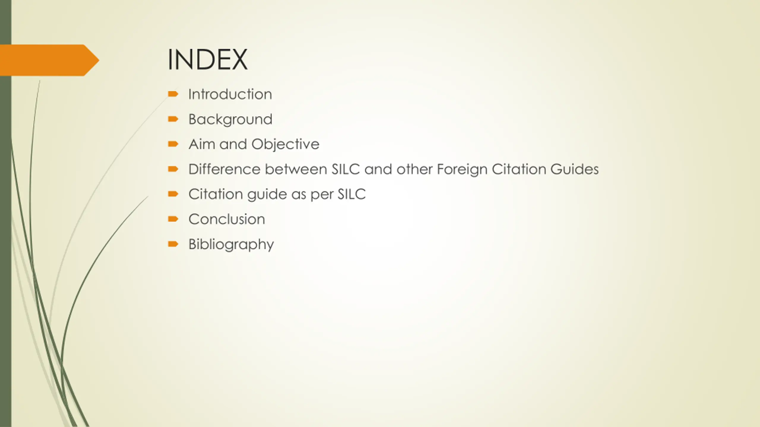 INDEX Introduction Background Aim and Objective Difference between SILC and other Foreign Citation Guides Citation guide as per SILC Conclusion Bibliography