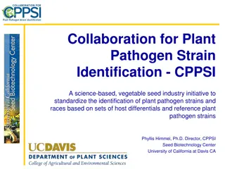 CPPSI @ UC Davis Secured commitments from all Founding Sponsors to renew 3 year memberships Awarded CDFA SCBG funding for 2.5 years in support of continued CPPSI growth $340,000 1 Nov 2017 31 Mar 2020 Waiting on final UC Davis approval to start charging nonmembers for differentials and reference strains One Stop Shopping service Can still access differentiating hosts from the USDA via GRIN Coordinate with the launch of the round 2 Reference Materials February issue of Seed World feature article on CPPSI