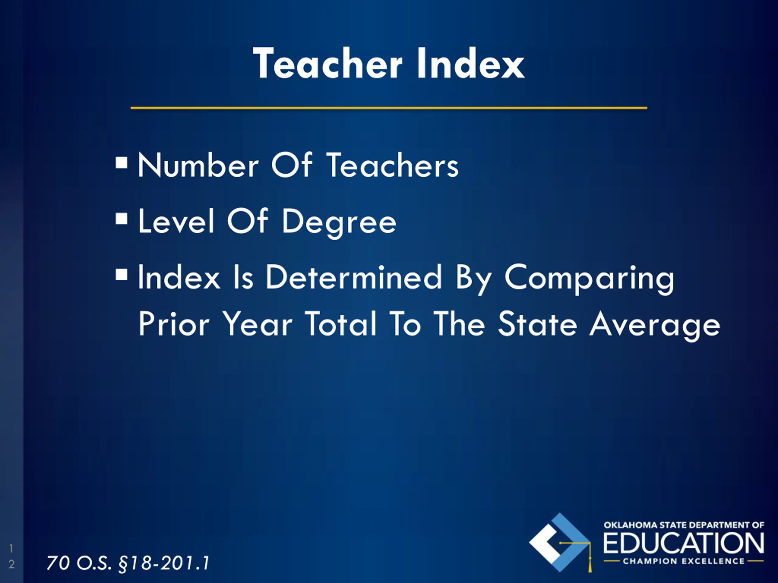 Teacher Index Number Of Teachers Level Of Degree Index Is Determined By Comparing Prior Year Total To The State Average 1 2 70 O.S. 18-201.1