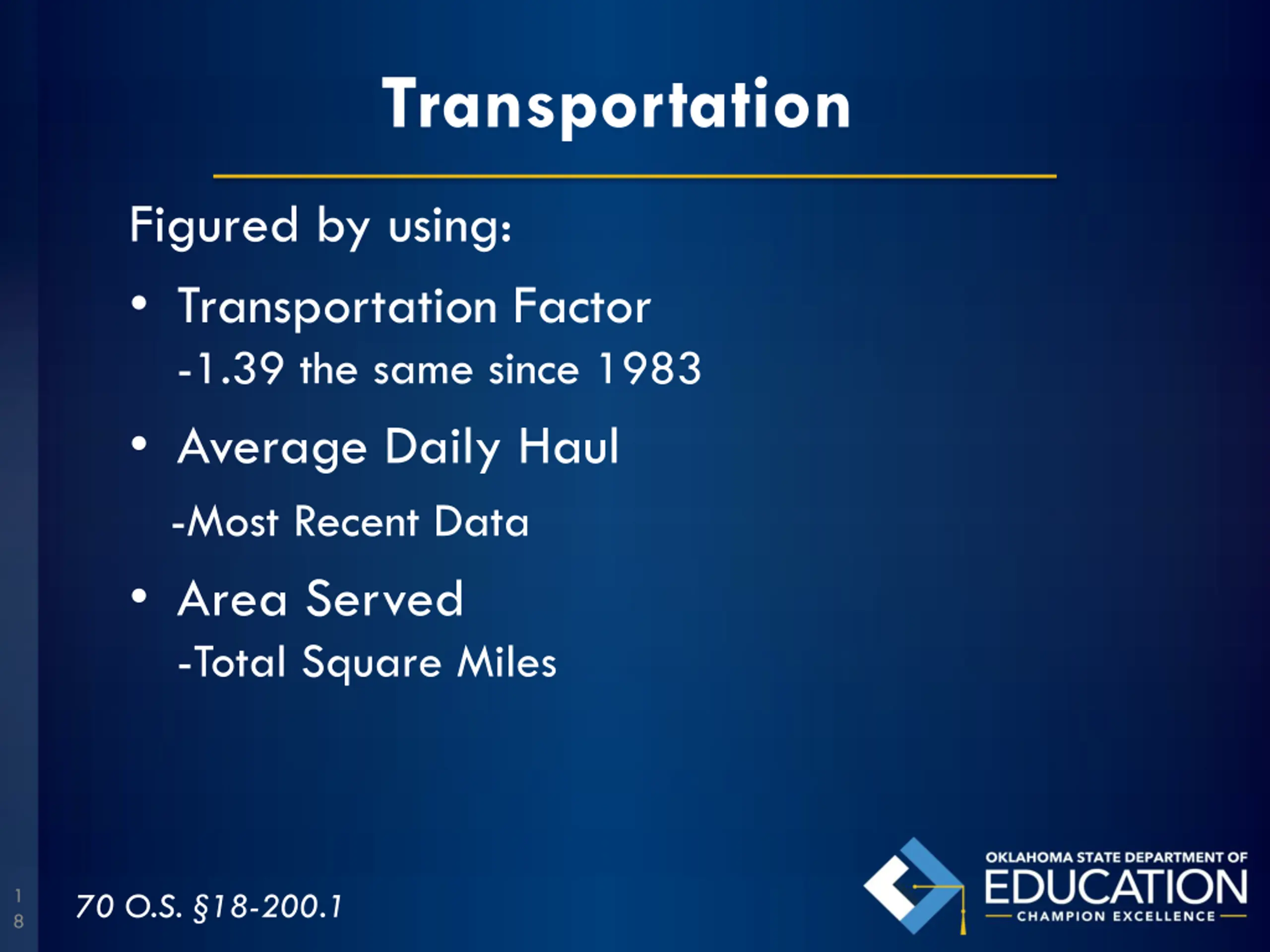 Transportation Figured by using: Transportation Factor -1.39 the same since 1983 Average Daily Haul -Most Recent Data Area Served -Total Square Miles 1 8 70 O.S. 18-200.1