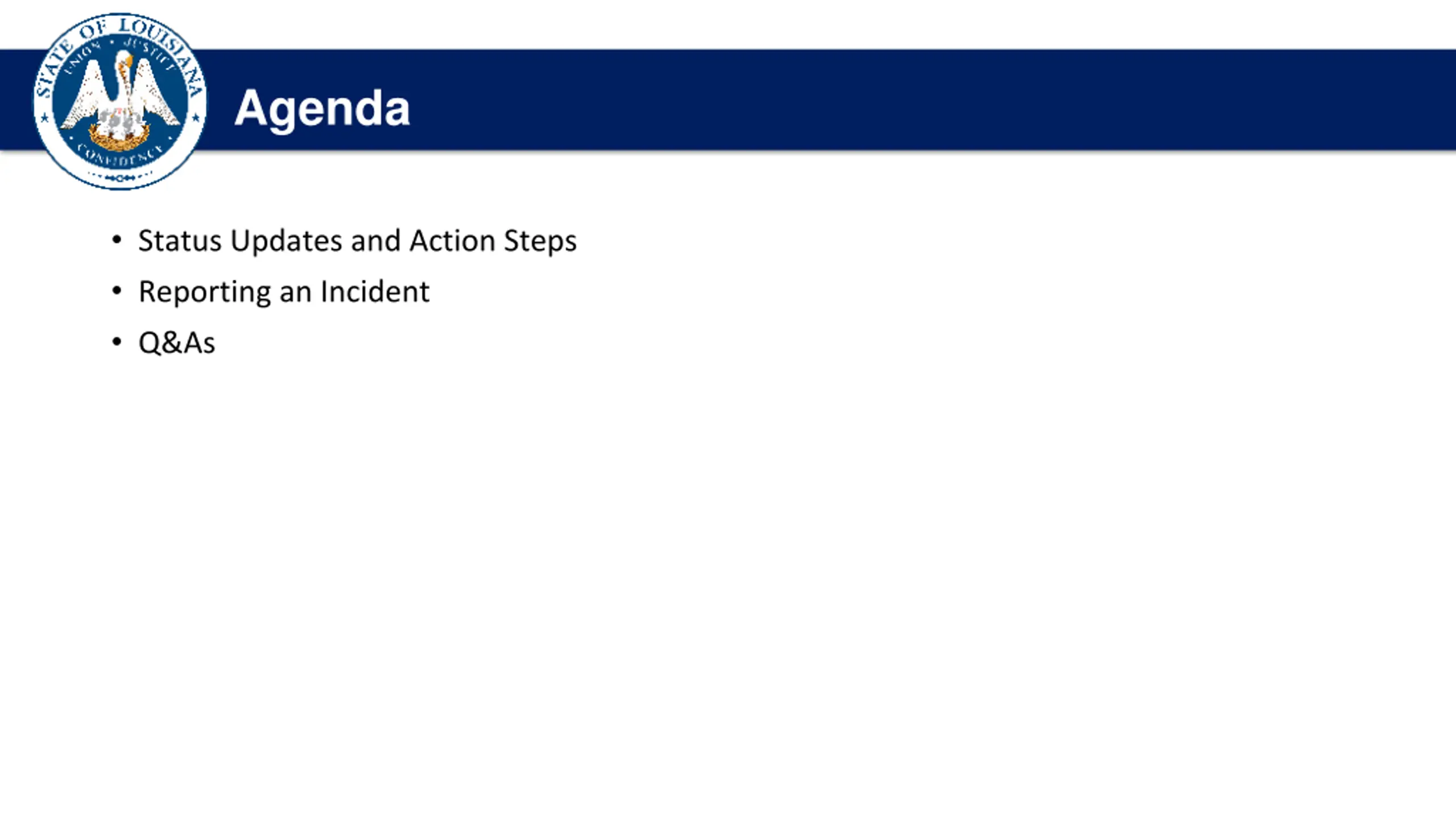 Agenda Status Updates and Action Steps Reporting an Incident Q&As