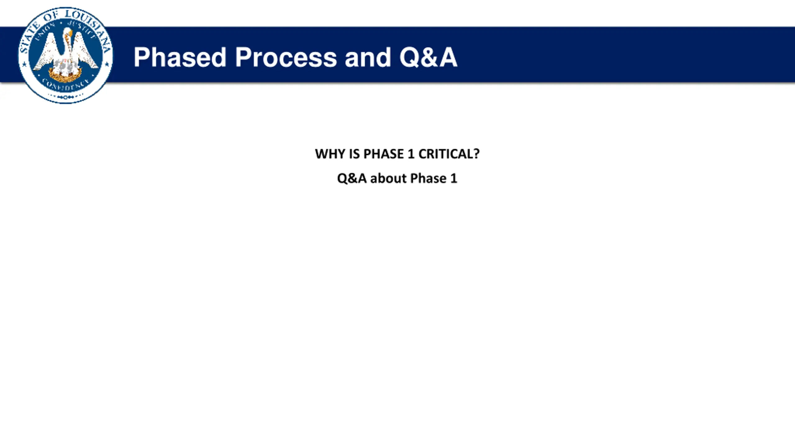 Introduction and Opening Comments Phased Process and Q&A WHY IS PHASE 1 CRITICAL? Q&A about Phase 1