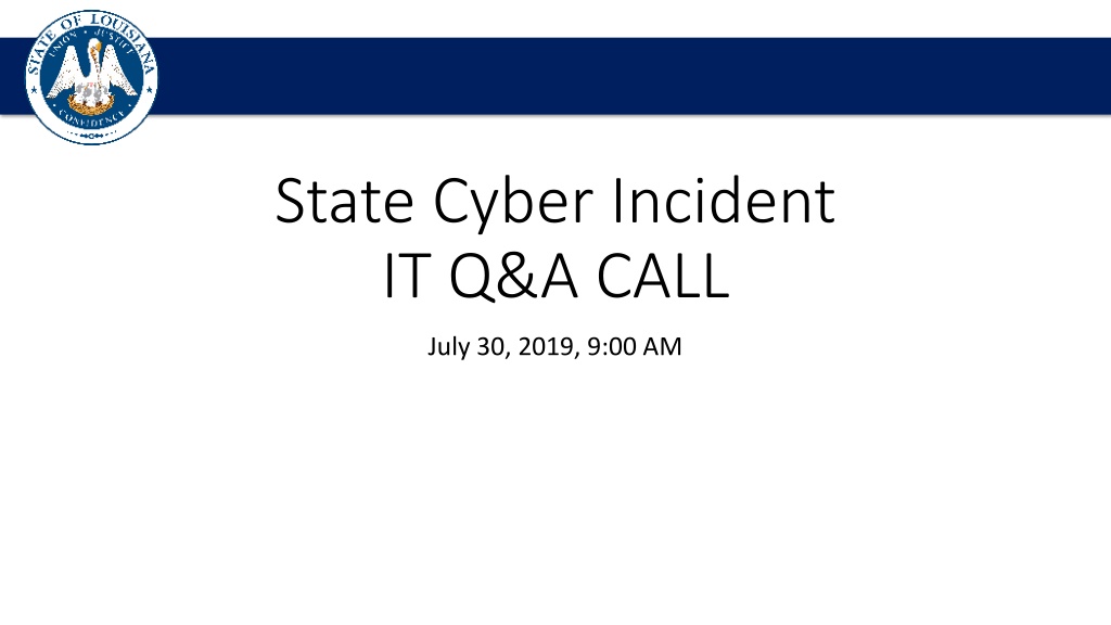 State Cyber Incident IT Q&A CALL July 30, 2019, 9:00 AM
