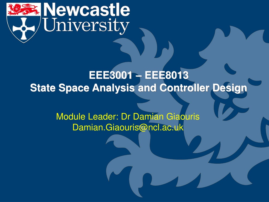 EEE3001 EEE8013 State Space Analysis and Controller Design Module Leader: Dr Damian Giaouris Damian.Giaouris@ncl.ac.uk