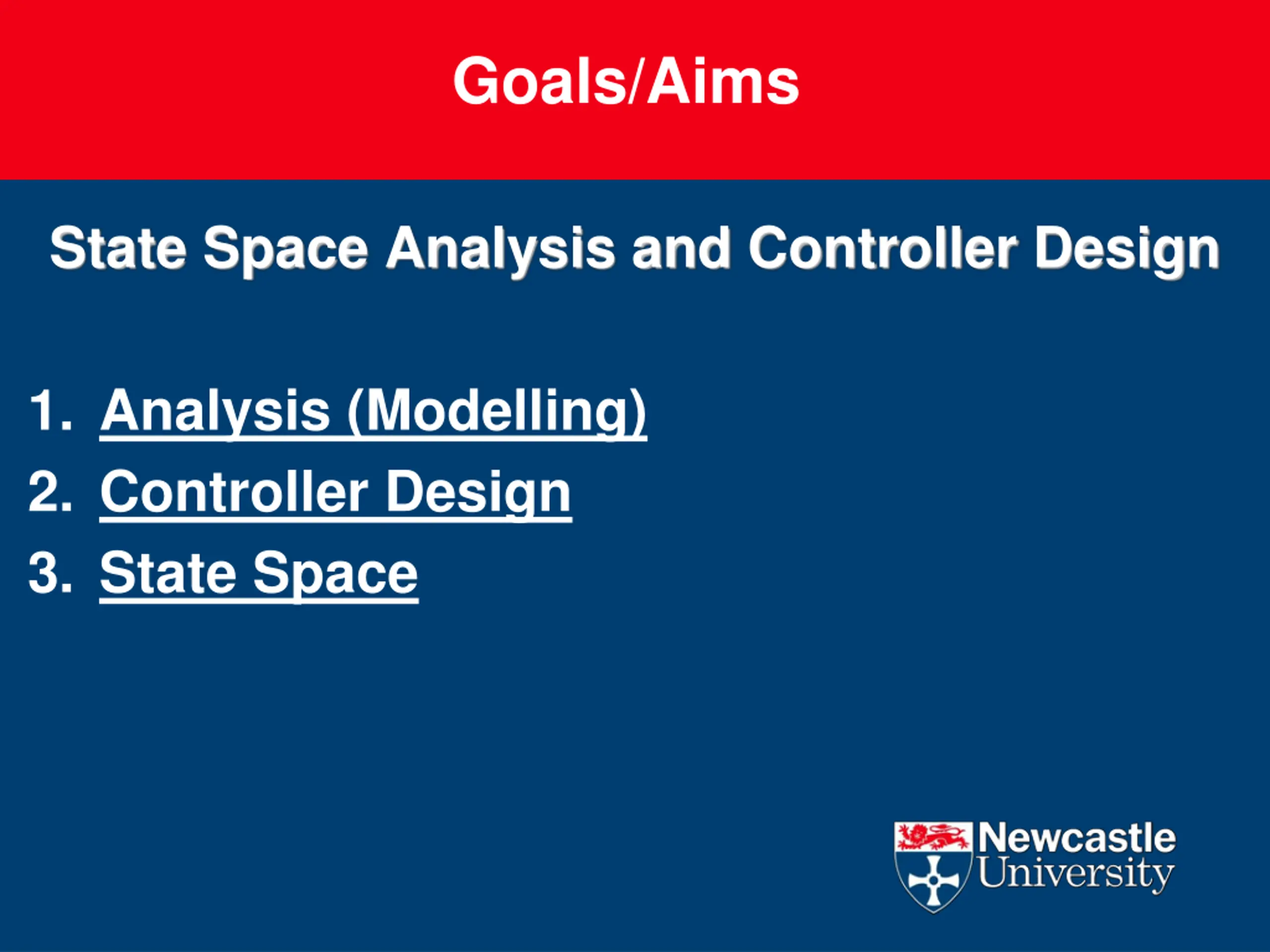 Goals/Aims State Space Analysis and Controller Design 1. Analysis (Modelling) 2. Controller Design 3. State Space