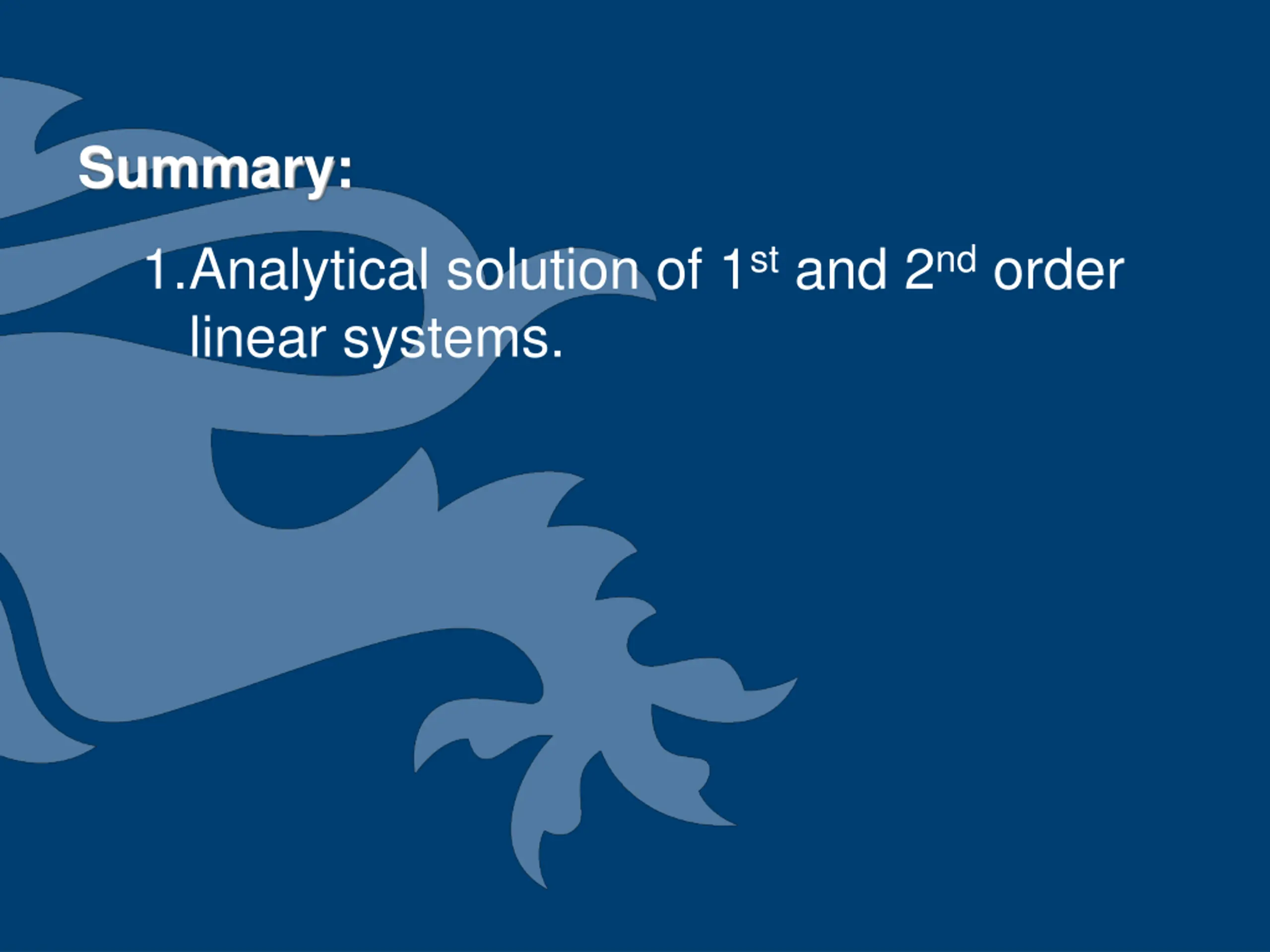 Summary: 1.Analytical solution of 1st and 2nd order linear systems.