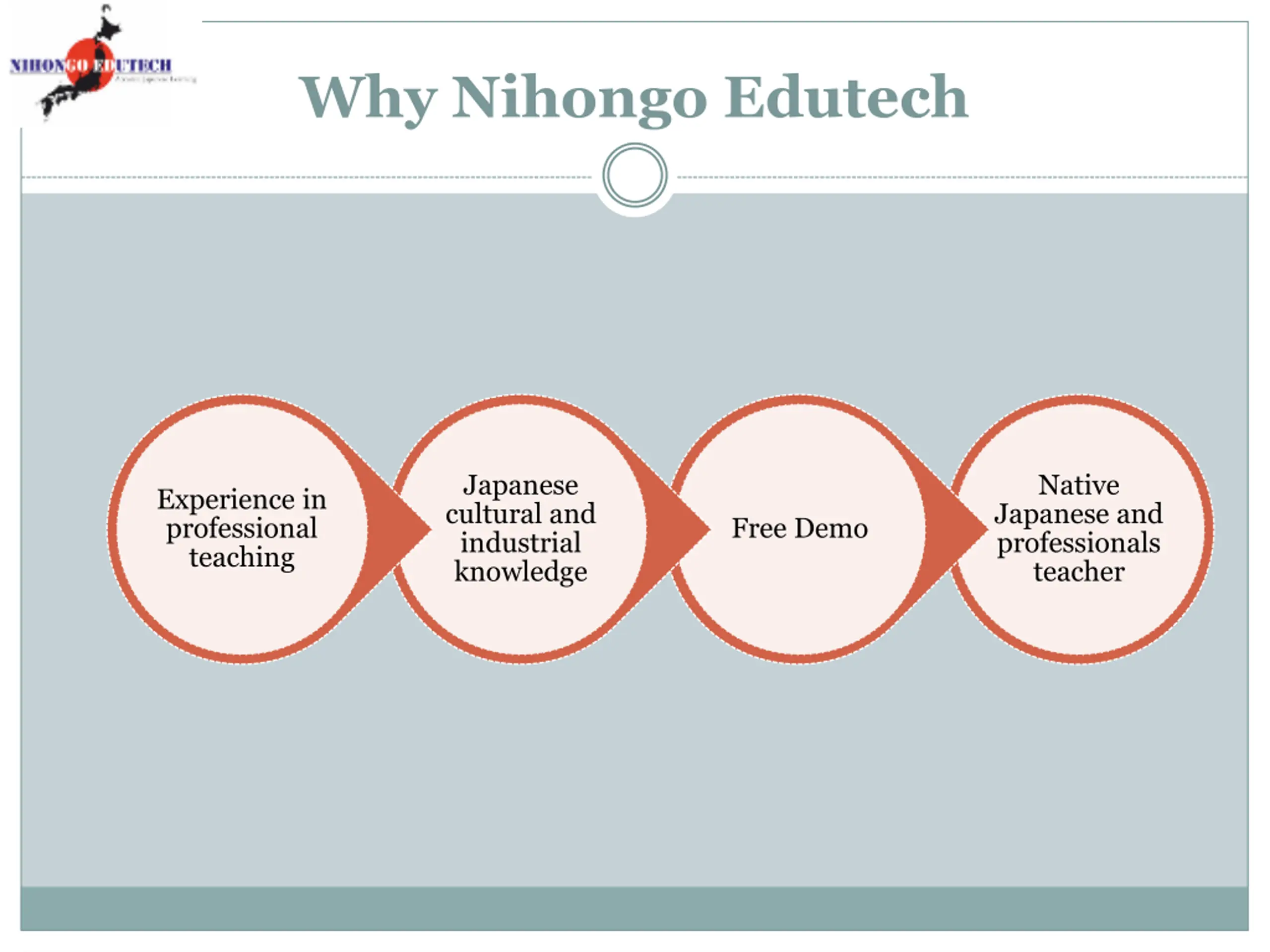 Why Nihongo Edutech Japanese cultural and industrial knowledge Native Experience in professional teaching Japanese and professionals teacher Free Demo