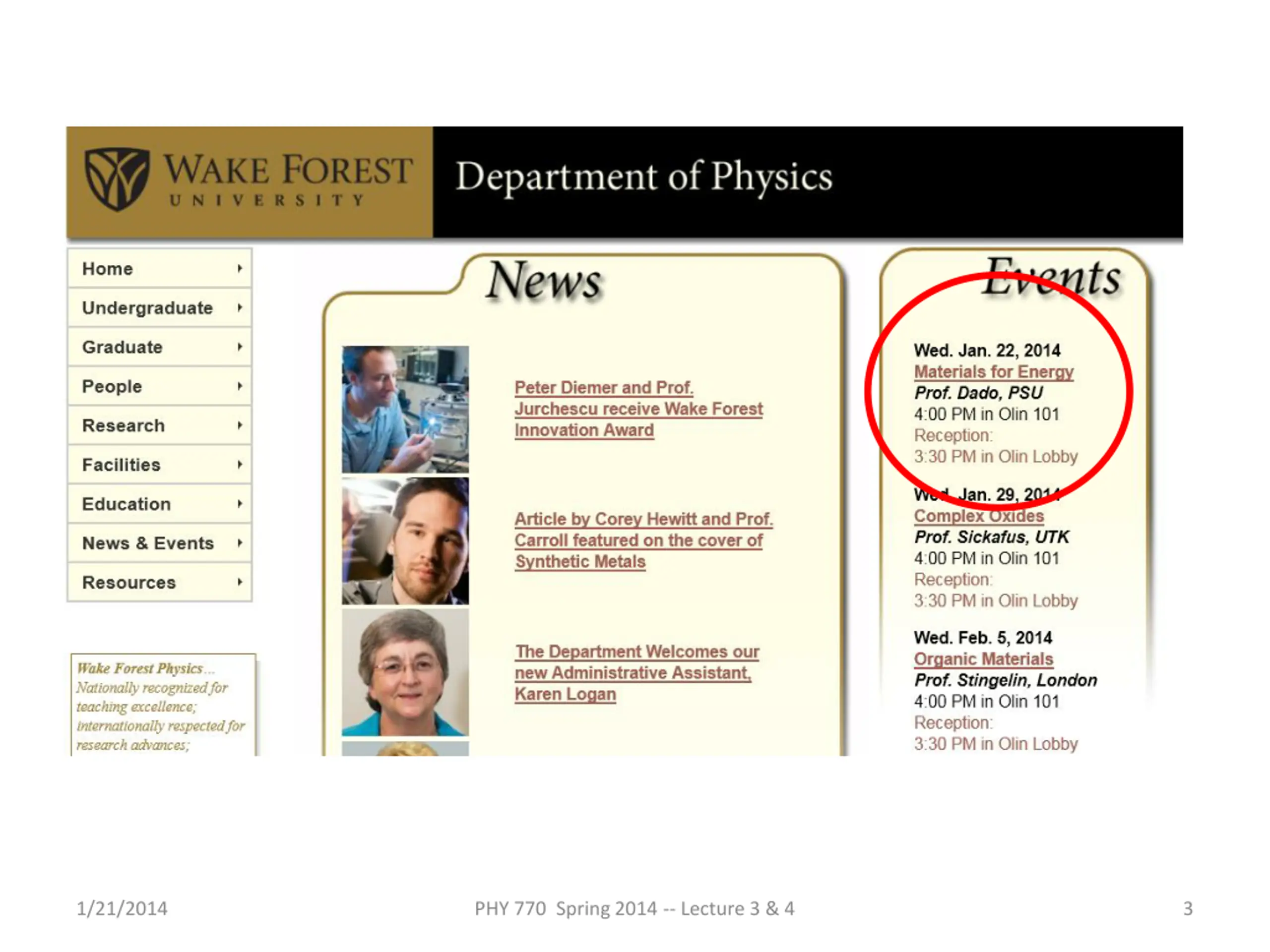 1/21/2014 PHY 770 Spring 2014 -- Lecture 3 & 4 3