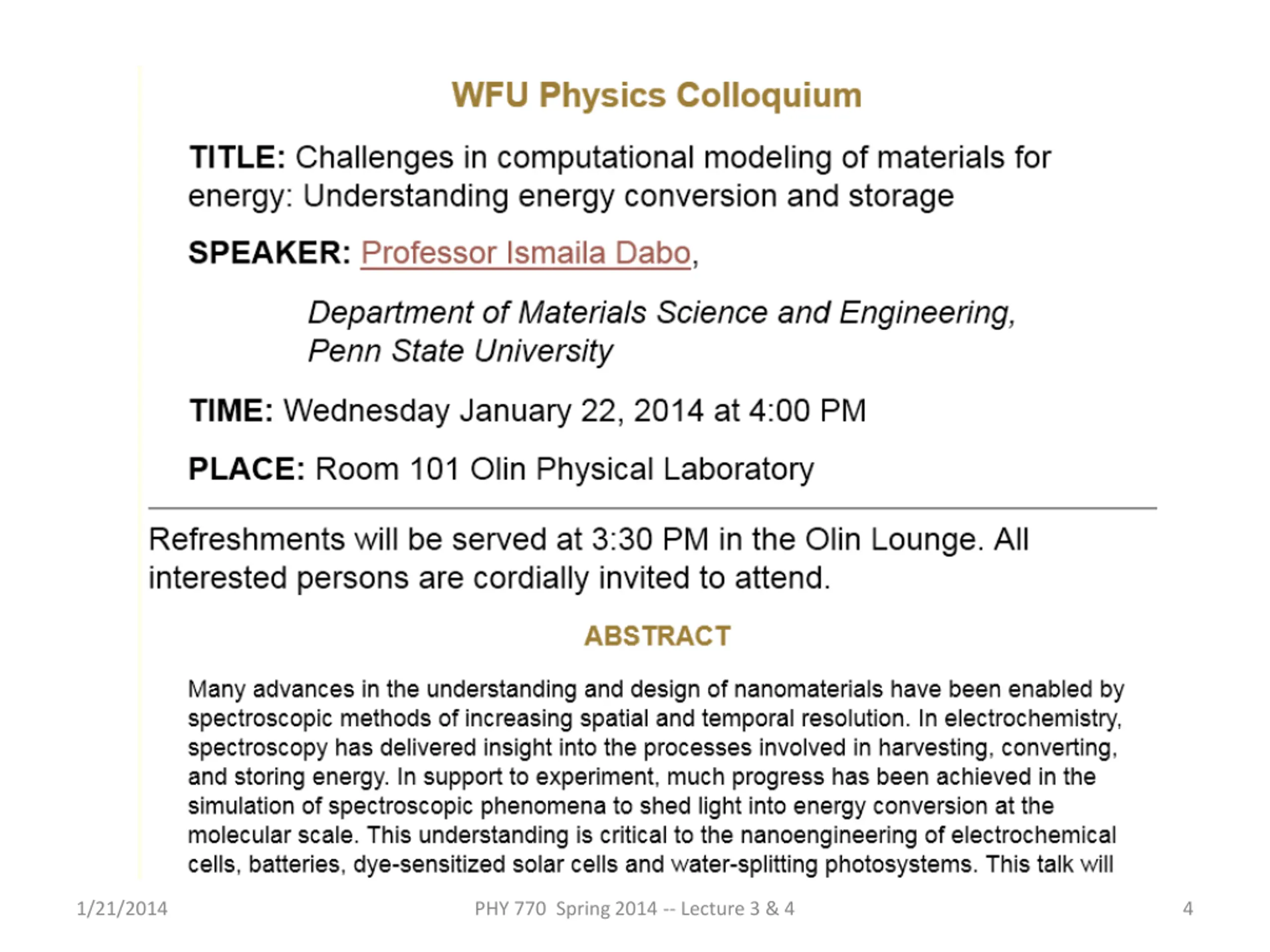 1/21/2014 PHY 770 Spring 2014 -- Lecture 3 & 4 4