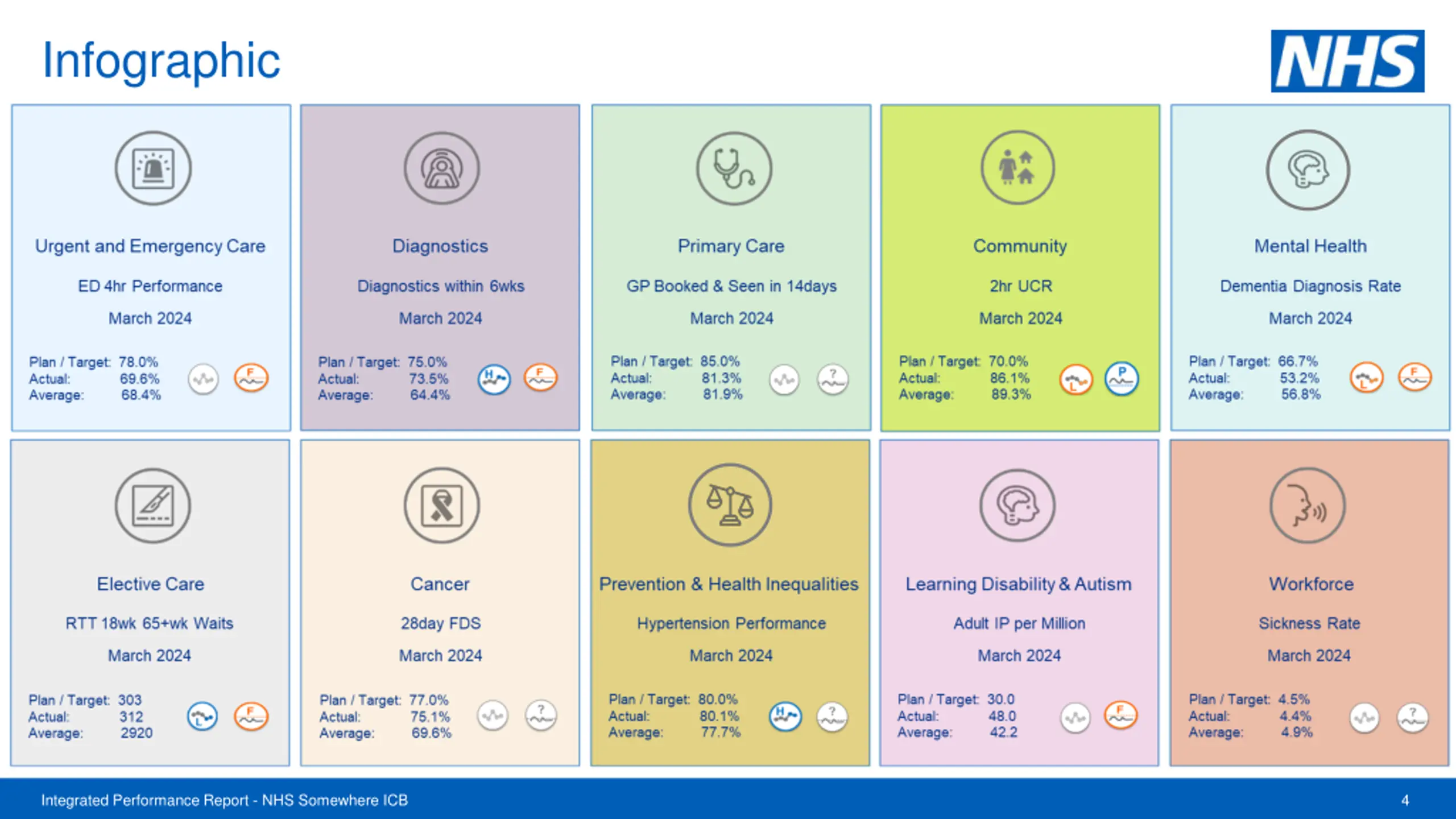 Infographic Integrated Performance Report - NHS Somewhere ICB 4