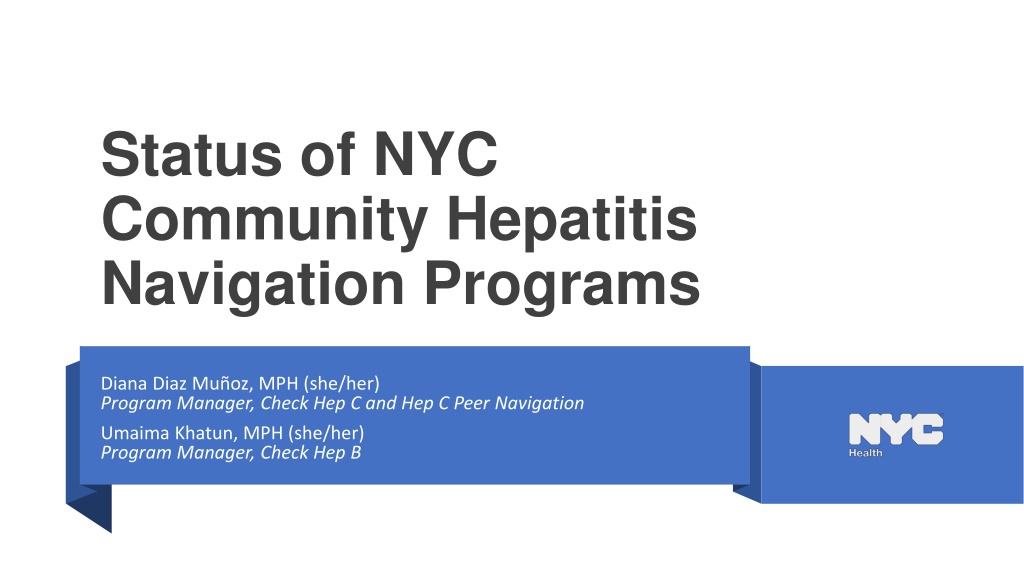 Status of NYC Community Hepatitis Navigation Programs Diana Diaz Mu oz, MPH (she/her) Program Manager, Check Hep C and Hep C Peer Navigation Umaima Khatun, MPH (she/her) Program Manager, Check Hep B