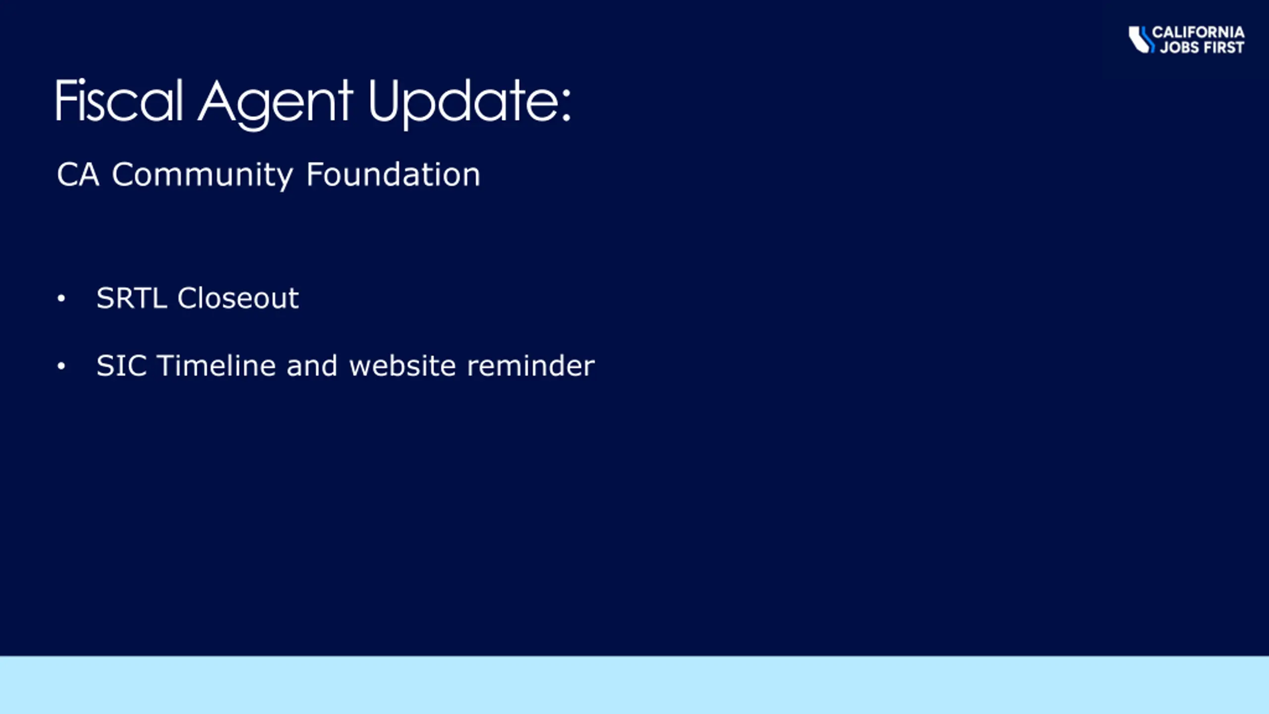 Fiscal Agent Update: CA Community Foundation SRTL Closeout SIC Timeline and website reminder