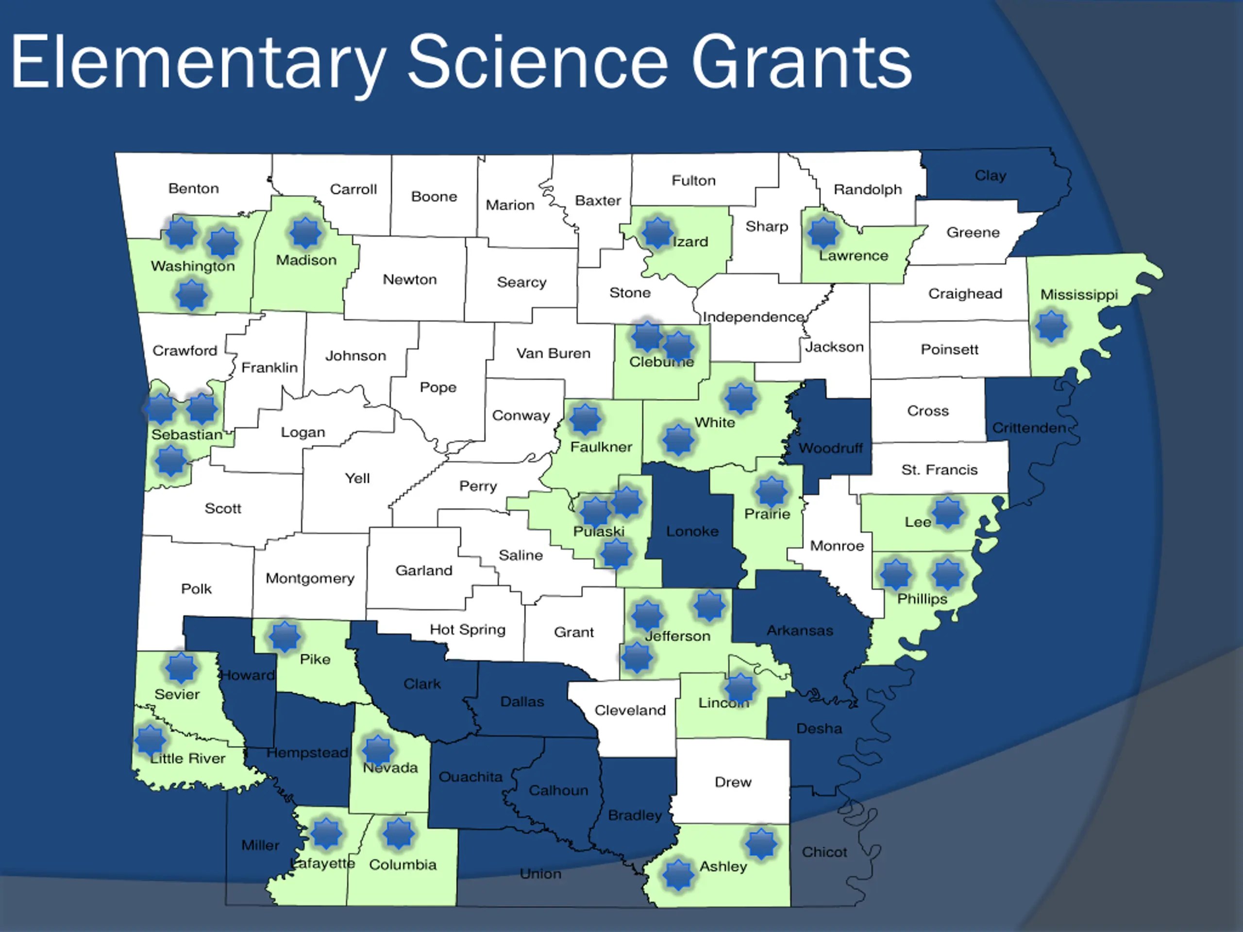 Elementary Science Grants Clay Fulton Benton Carroll Randolph Boone Baxter Marion Sharp Greene Izard Lawrence Madison Washington Newton Searcy Stone Craighead Mississippi Independence Jackson Poinsett Crawford Van Buren Johnson Cleburne Franklin Pope Cross Conway White Crittenden Logan Sebastian Faulkner Woodruff St. Francis Yell Perry Scott Prairie Lee Lonoke Pulaski Monroe Saline Garland Montgomery Polk Phillips Hot Spring Arkansas Grant Jefferson Pike Howard Clark Sevier Dallas Lincoln Cleveland Desha Hempstead Little River Nevada Ouachita Drew Calhoun Bradley Miller Chicot Lafayette Columbia Ashley Union