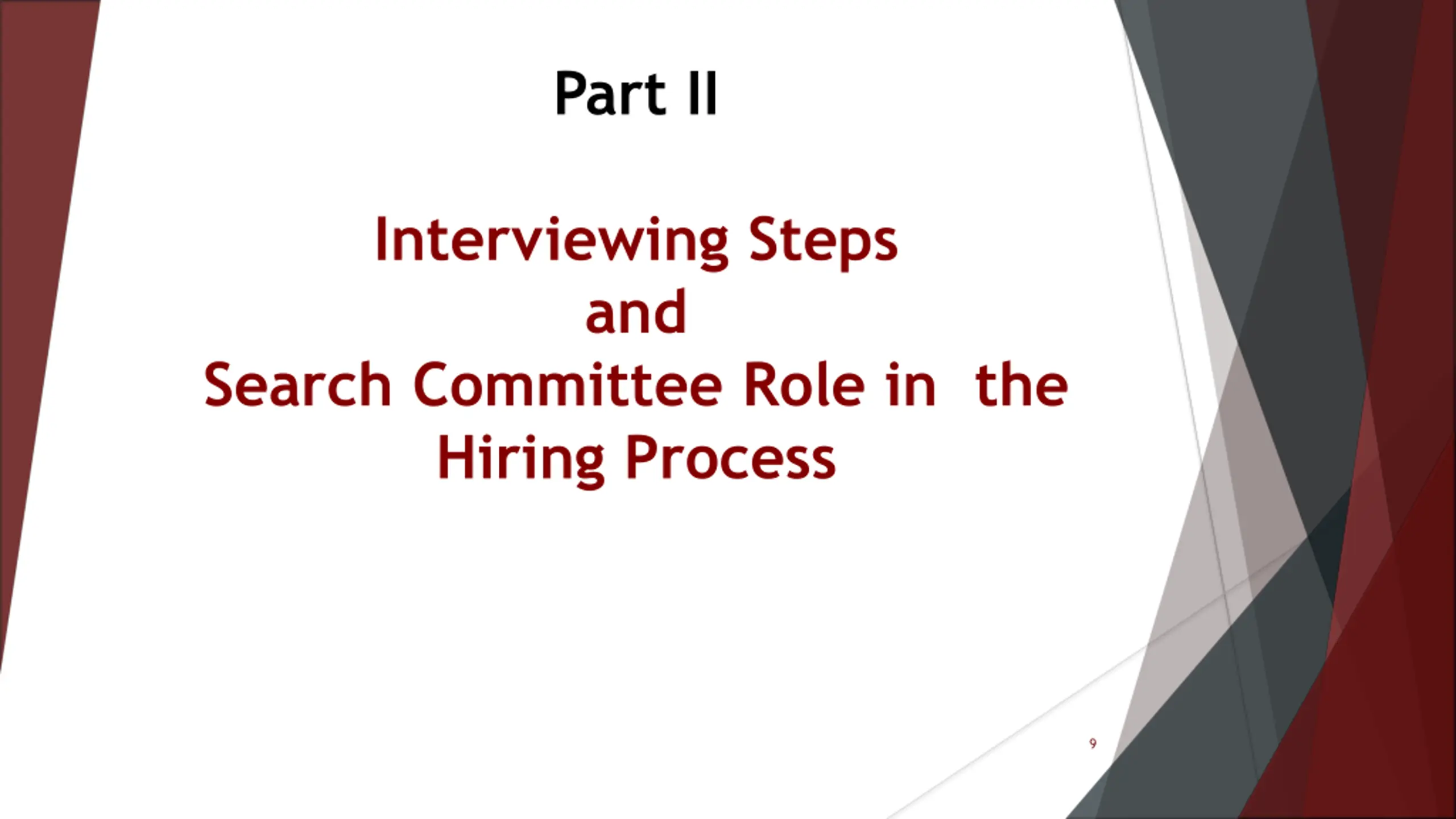 Part II Interviewing Steps and Search Committee Role in the Hiring Process 9