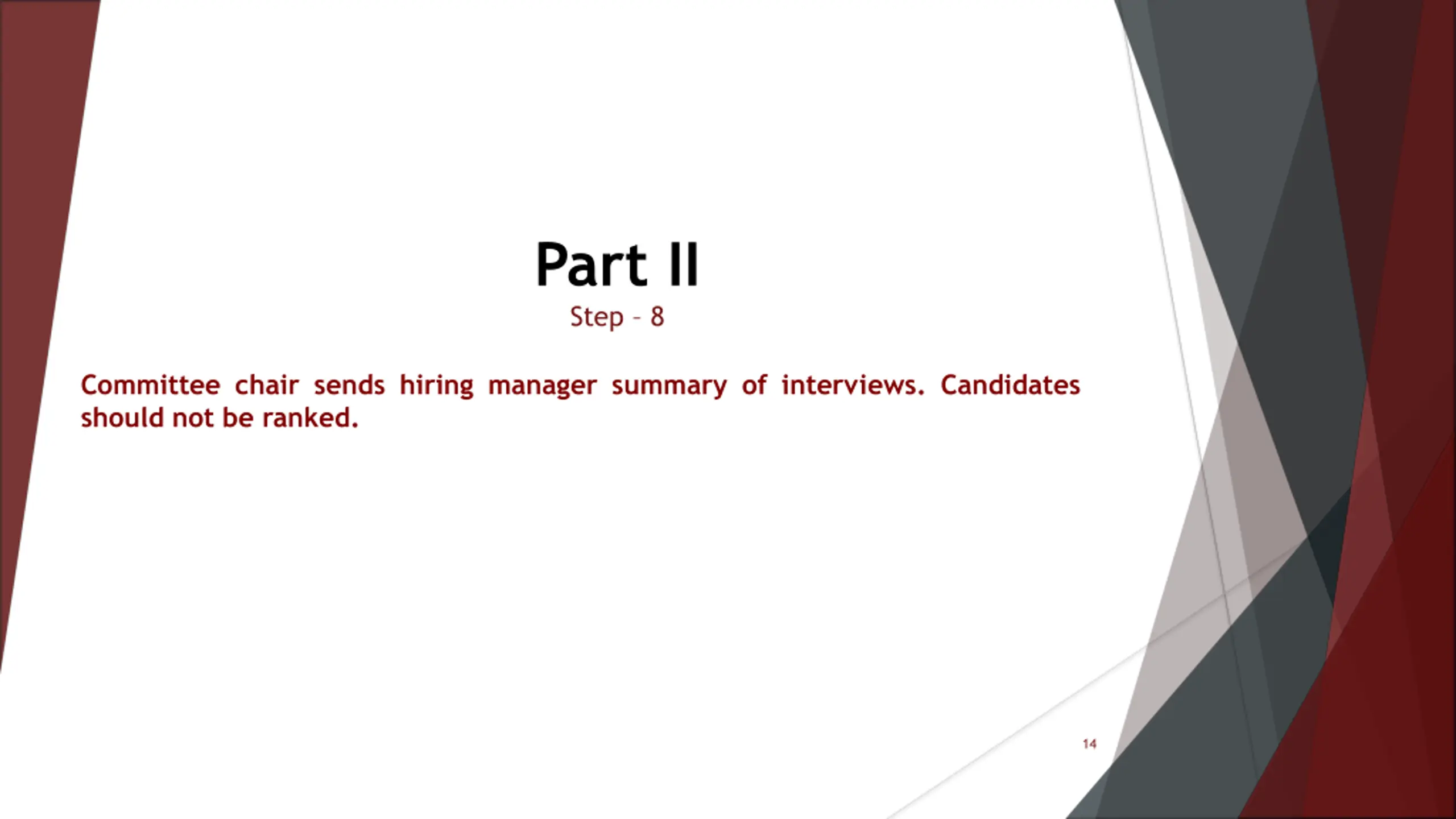 Part II Step 8 Committee chair sends hiring manager summary of interviews. Candidates should not be ranked. 14