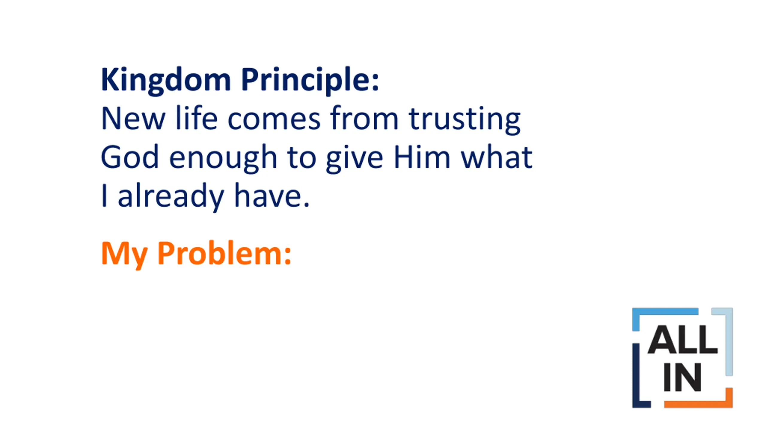 Kingdom Principle: New life comes from trusting God enough to give Him what I already have. My Problem: