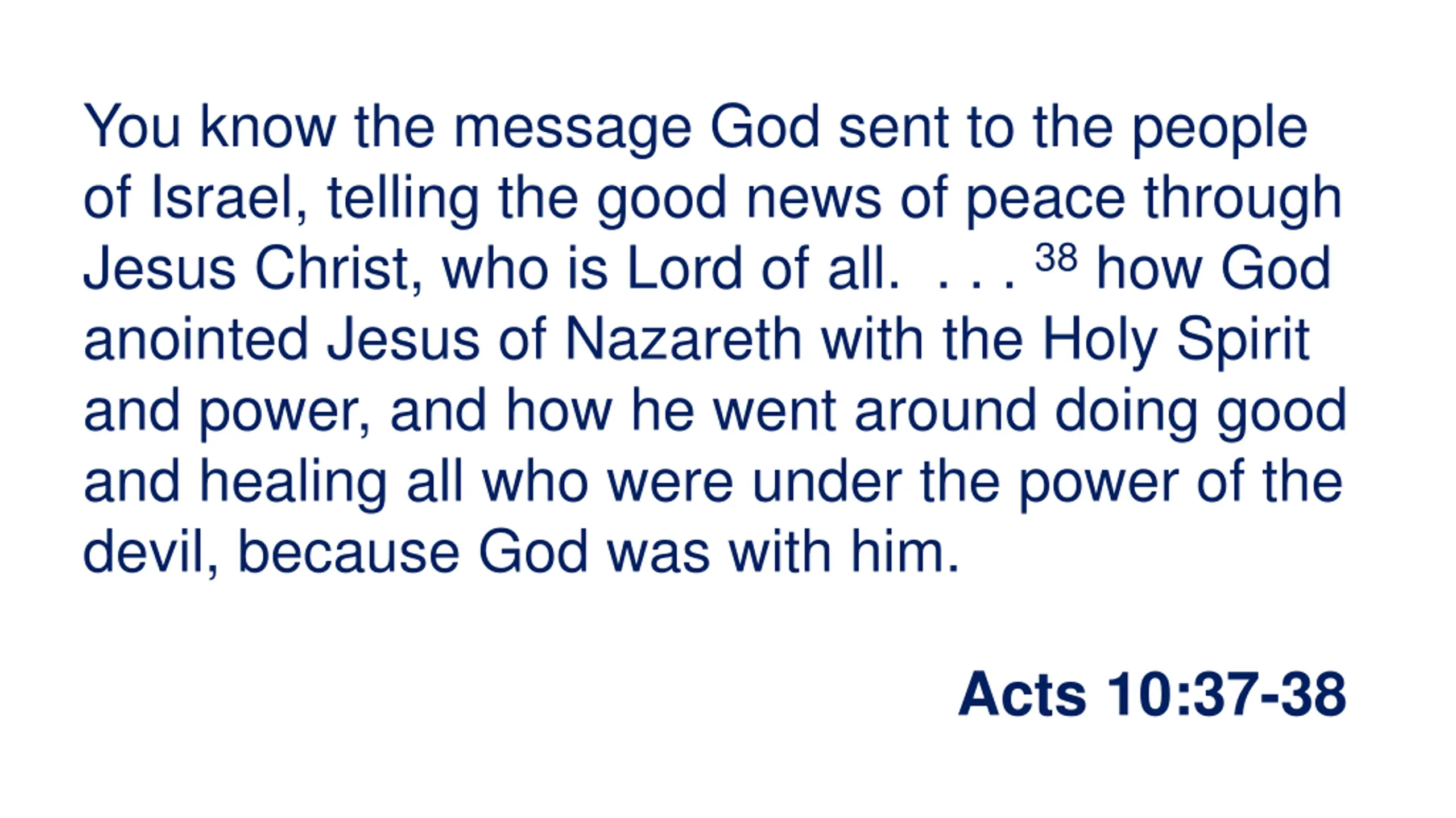 You know the message God sent to the people of Israel, telling the good news of peace through Jesus Christ, who is Lord of all. . . . 38 how God anointed Jesus of Nazareth with the Holy Spirit and power, and how he went around doing good and healing all who were under the power of the devil, because God was with him. Acts 10:37-38