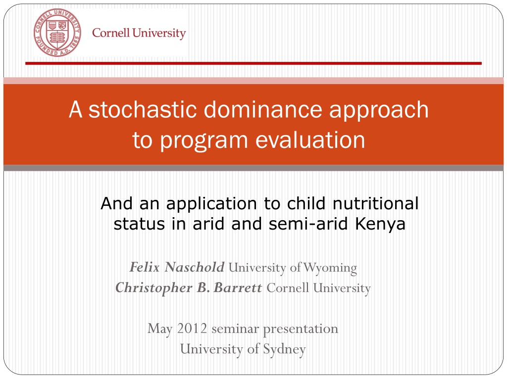A stochastic dominance approach to program evaluation And an application to child nutritional status in arid and semi-arid Kenya Felix Naschold University of Wyoming Christopher B. Barrett Cornell University May 2012 seminar presentation University of Sydney