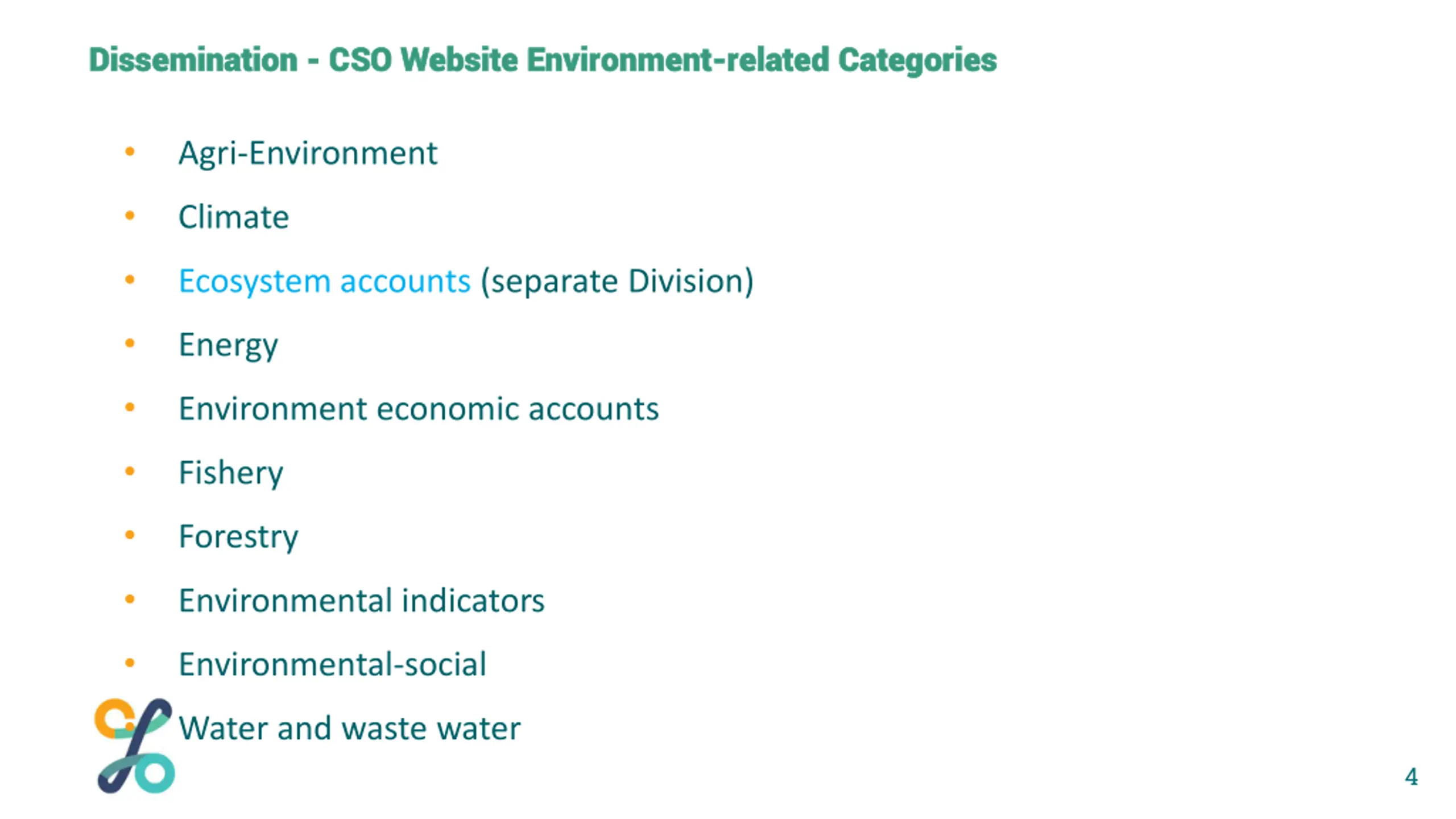Dissemination Dissemination - - CSO Website Environment CSO Website Environment- -related Categories related Categories Agri-Environment Climate Ecosystem accounts (separate Division) Energy Environment economic accounts Fishery Forestry Environmental indicators Environmental-social Water and waste water 4