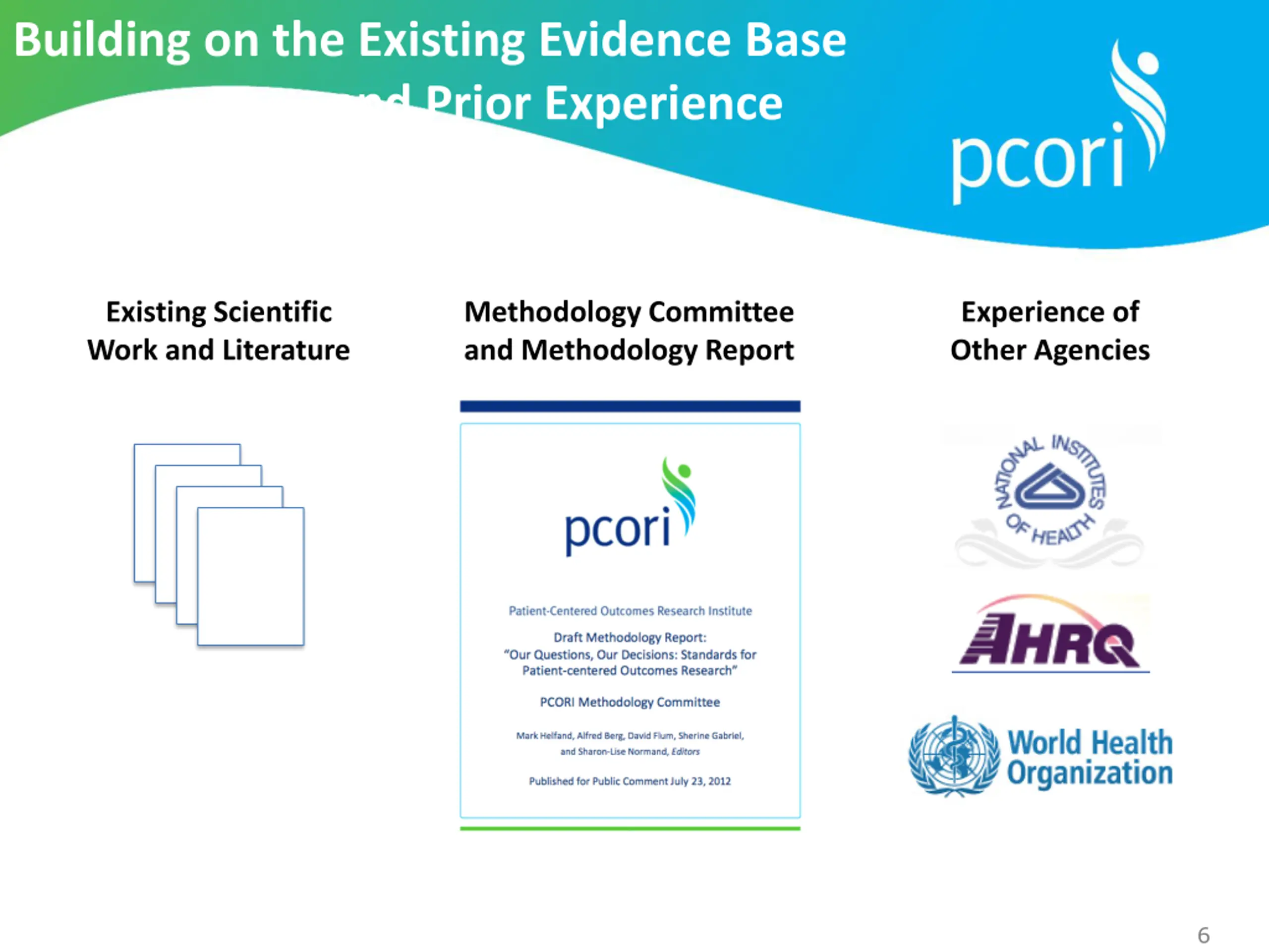 Building on the Existing Evidence Base and Prior Experience Existing Scientific Work and Literature Methodology Committee and Methodology Report Experience of Other Agencies 6