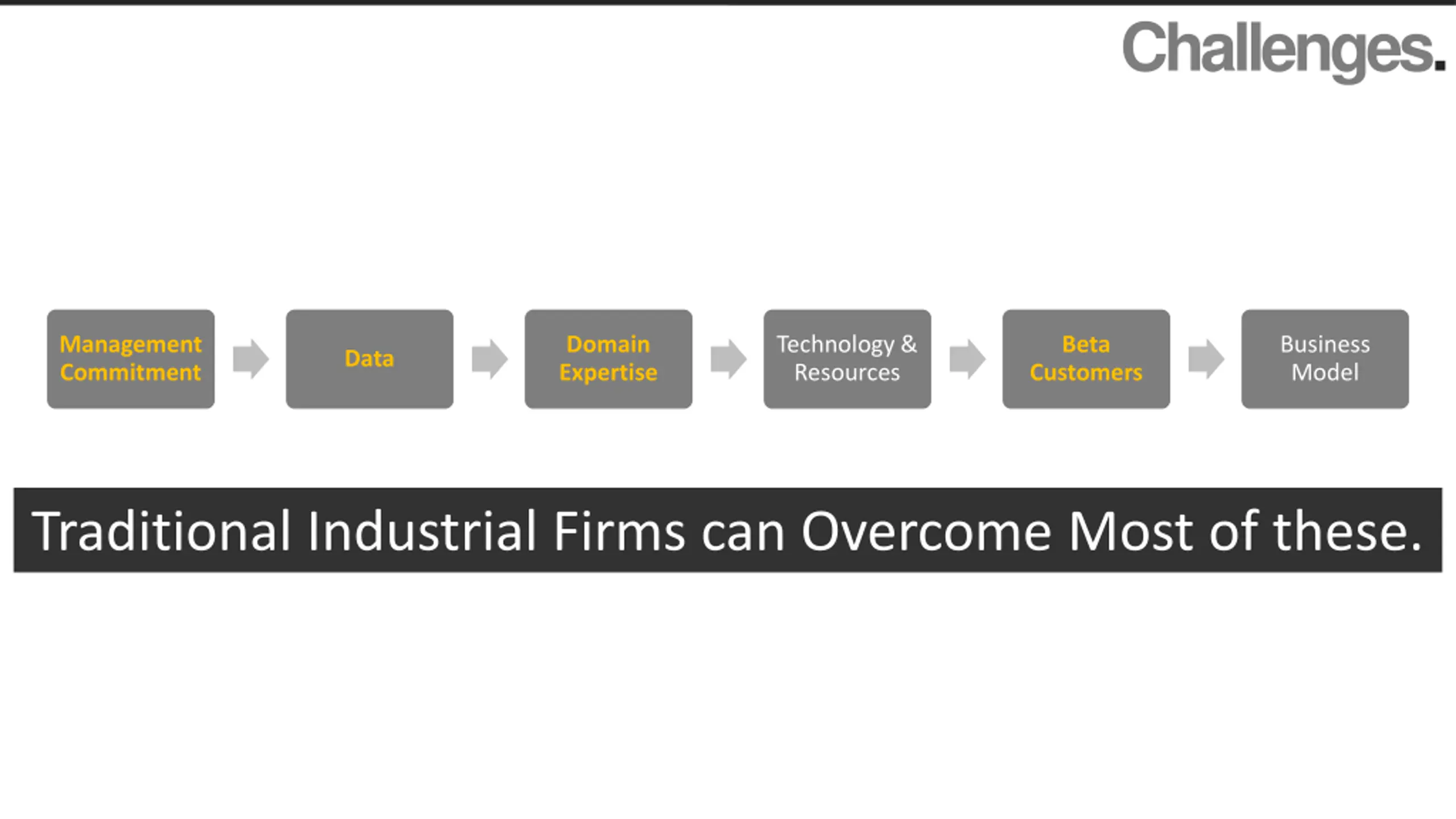 Challenges. Management Commitment Domain Expertise Technology & Resources Beta Business Model Data Customers Traditional Industrial Firms can Overcome Most of these.