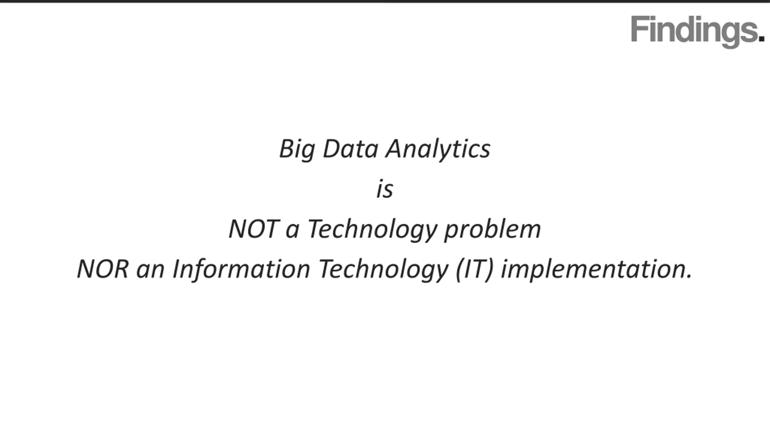 Findings. Big Data Analytics is NOT a Technology problem NOR an Information Technology (IT) implementation.
